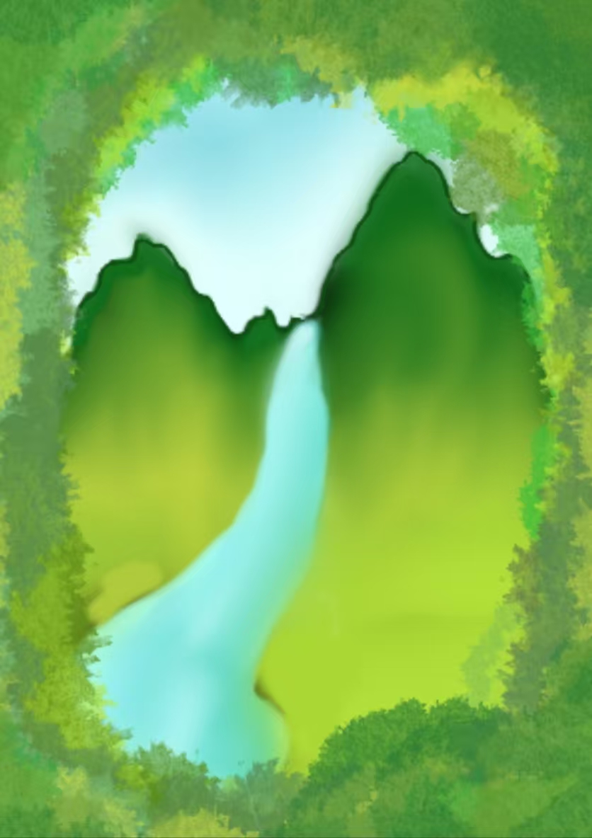 人们现在乱砍乱伐,污染水源,污染空气让大自然失去了往日的光彩,穿过树洞向里看去能看到被我们污染之前的环境,积极鼓励,让大家一起保护生态环境。 主要以绿色为主调达到绿水青山湛蓝天空的美好环境以绿色树叶为近处,山泉和高山为远处让大家想起以前的大自然,倡导大家一起保护大自然保护环境