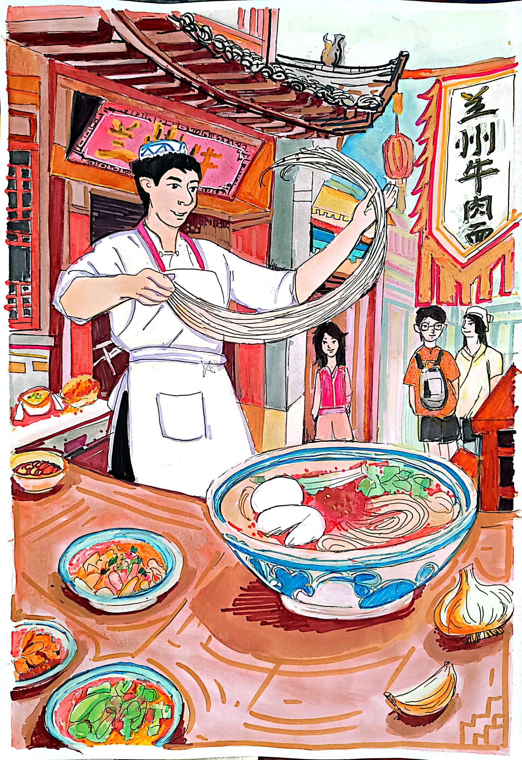 通过作品让受众直观感受兰州牛肉面的“形、味、魂”,既传递其作为地方美食的独特魅力,也展现兰州人对品质的执着与生活的热忱,让这道小吃成为连接地域文化与大众情感的纽带。