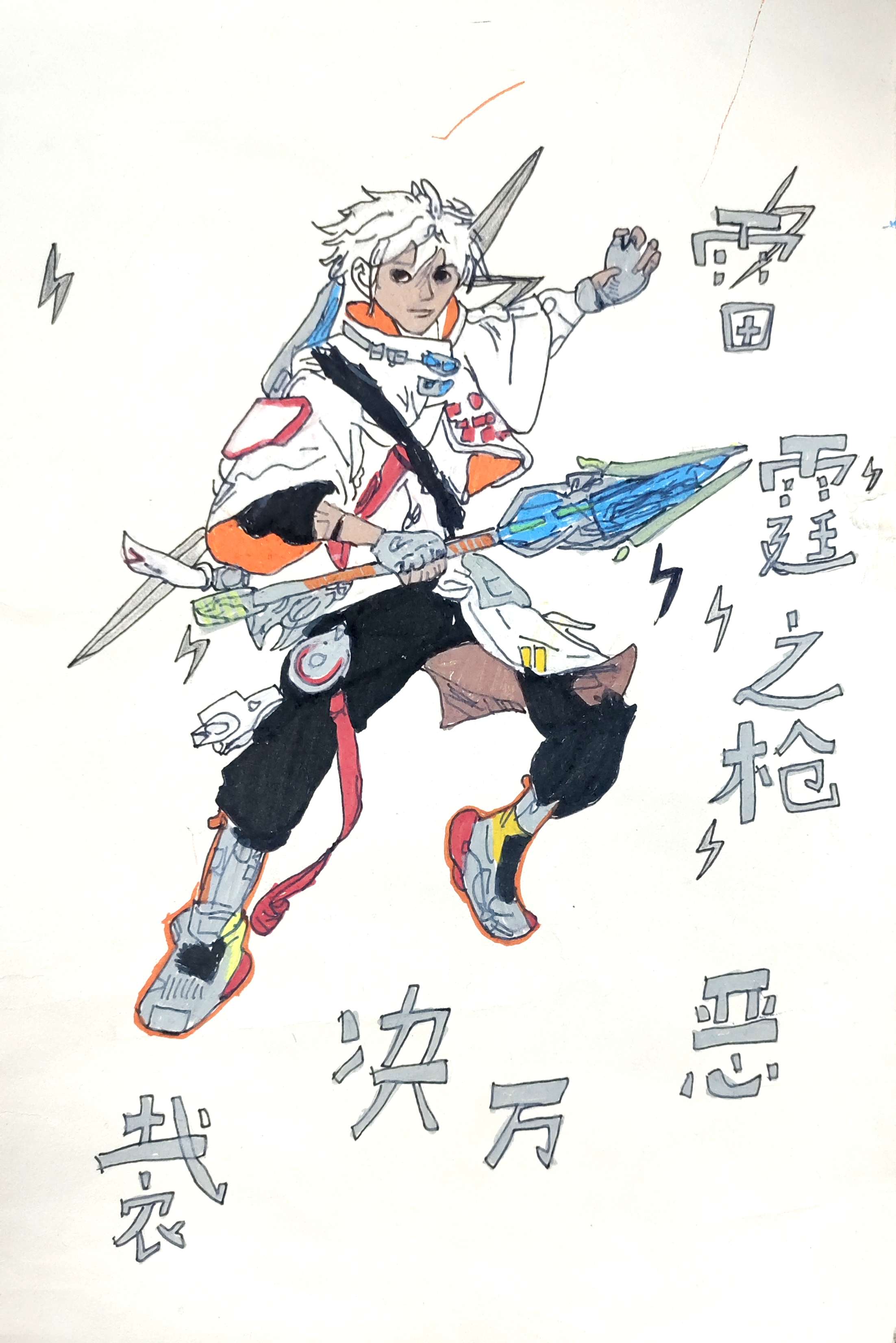 《雷霆枪士·万恶裁决》 这幅画塑造了一位帅气的枪士角色。他白发飞扬,身披个性服饰,手持 “雷霆之枪”,周身闪电环绕,尽显飒爽英姿。“裁万恶” 三字彰显其使命,仿佛随时能以雷霆之势,裁决邪恶。服饰配色鲜明,武器设计精巧,将力量与美感融合,勾勒出一个充满热血与正义的战斗身影 。