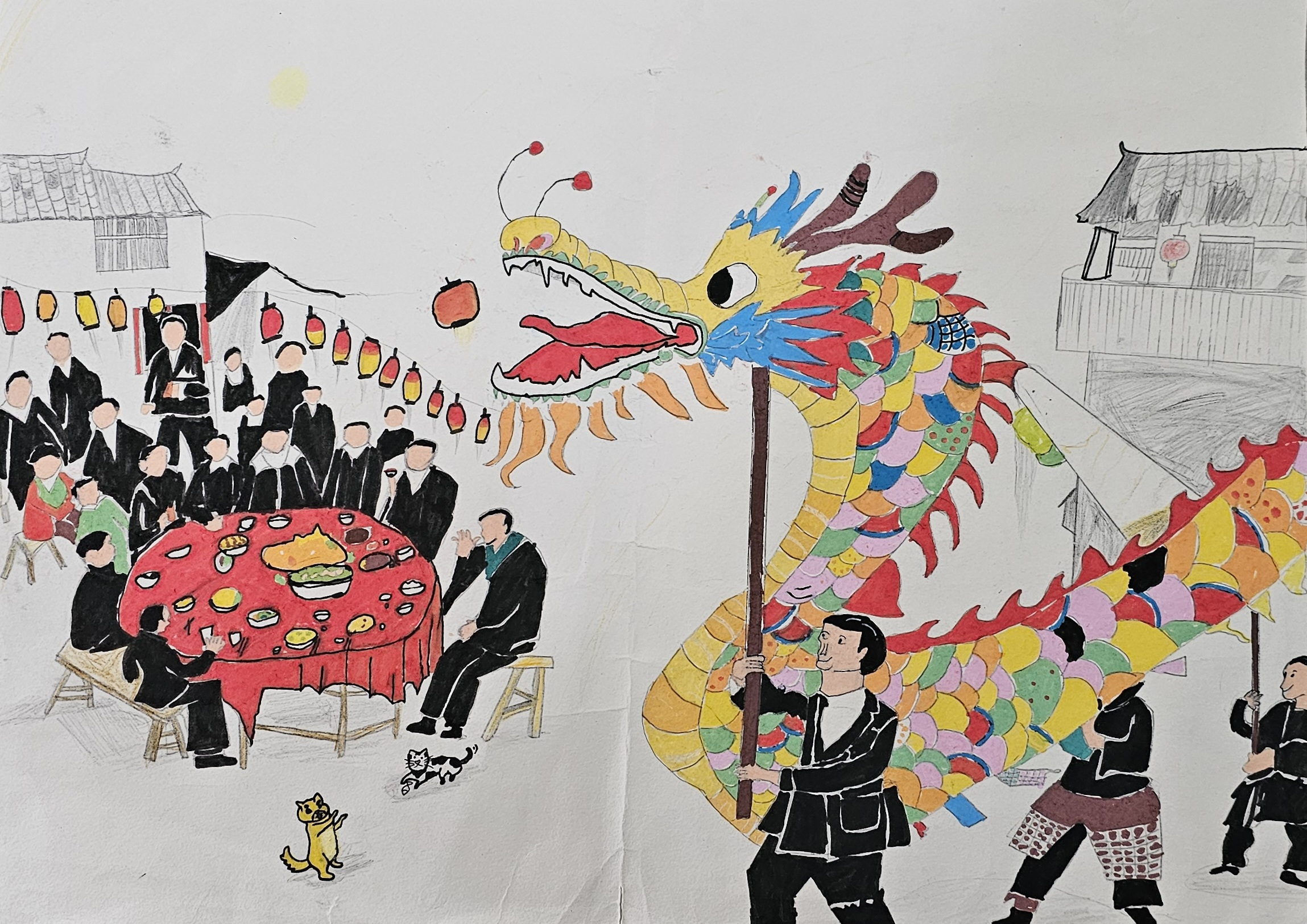 红黄交织的游龙在古村巷道中翻腾起舞,村民围坐圆桌共享佳肴,欢声笑语与锣鼓声交融,勾勒出浓郁的地方节庆特色。这场传承百年的龙舞不仅是一场民俗盛宴,更成为吸引游客沉浸式体验乡土文化的窗口。古建筑与传统活动相映成趣,展现了对文化生态的活态保护——不刻意迎合商业,而是让民俗在原生土壤中自然生长。游客至此,既能感受热闹的年味,也见证了一种与自然、历史共生的可持续发展模式,为乡村文旅注入历久弥新的生命力。
