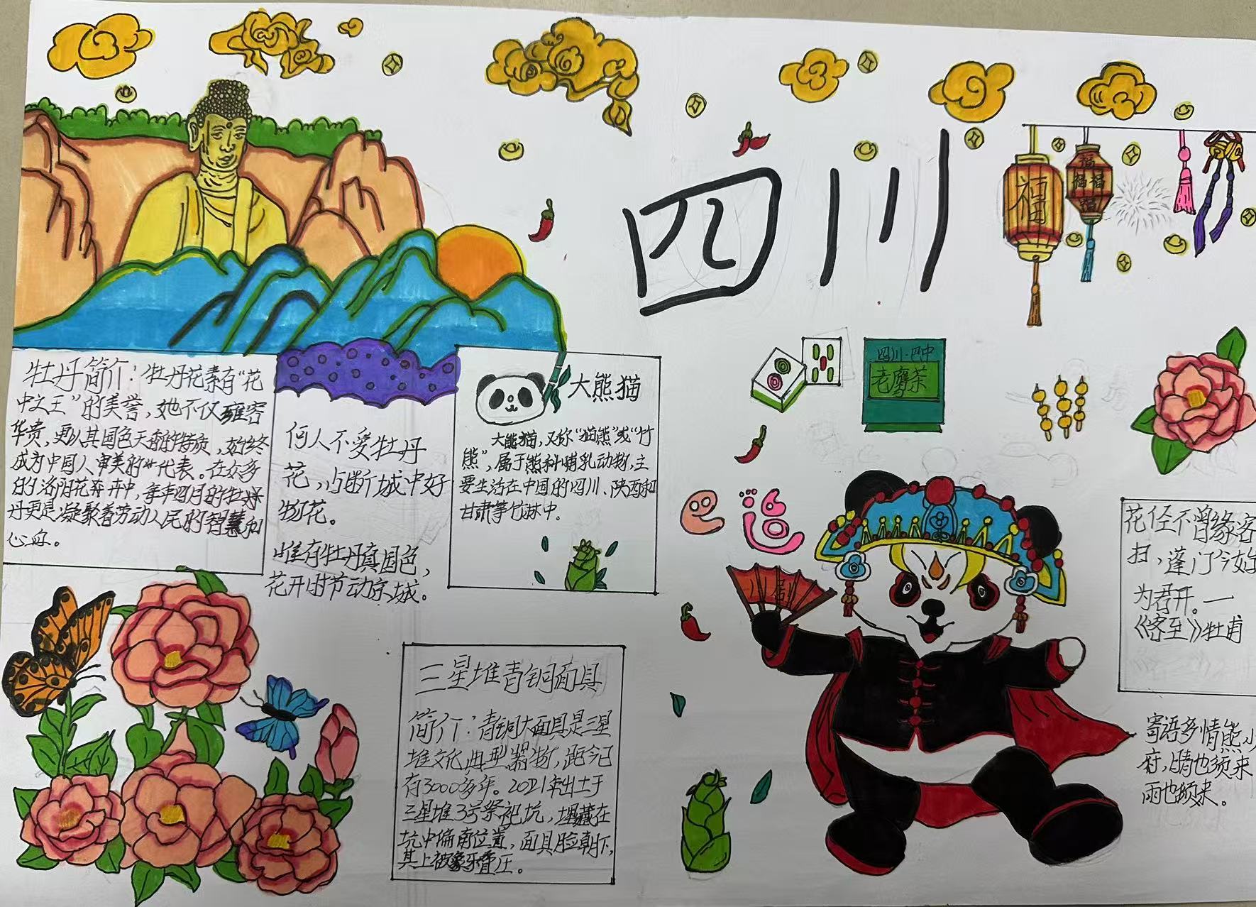 它以四川元素衬巴中特色:画里的巴中老鹰茶是川北特有饮品,搭配熊猫、三星堆等川蜀符号,既显四川文化的多元,也藏巴中地域底色——作为四川东北部城市,巴中既承川蜀文脉,又以老鹰茶、红色文化等自成一格,这幅画正是"川韵裹巴味"的生动缩影。