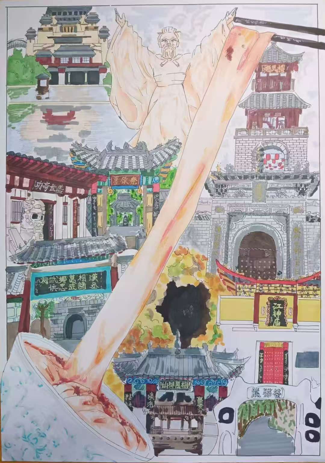 以汉中热面皮为画面中心,再串联汉中所管辖11个县的11个著名景区按照人口高低进行排版。重点宣传语汉中旅游风光。 热面皮不仅是舌尖滋味,更是打开汉中的钥匙他是读懂汉中风物与文化的温柔切口,也藏着家乡的味觉与风景的双重眷恋