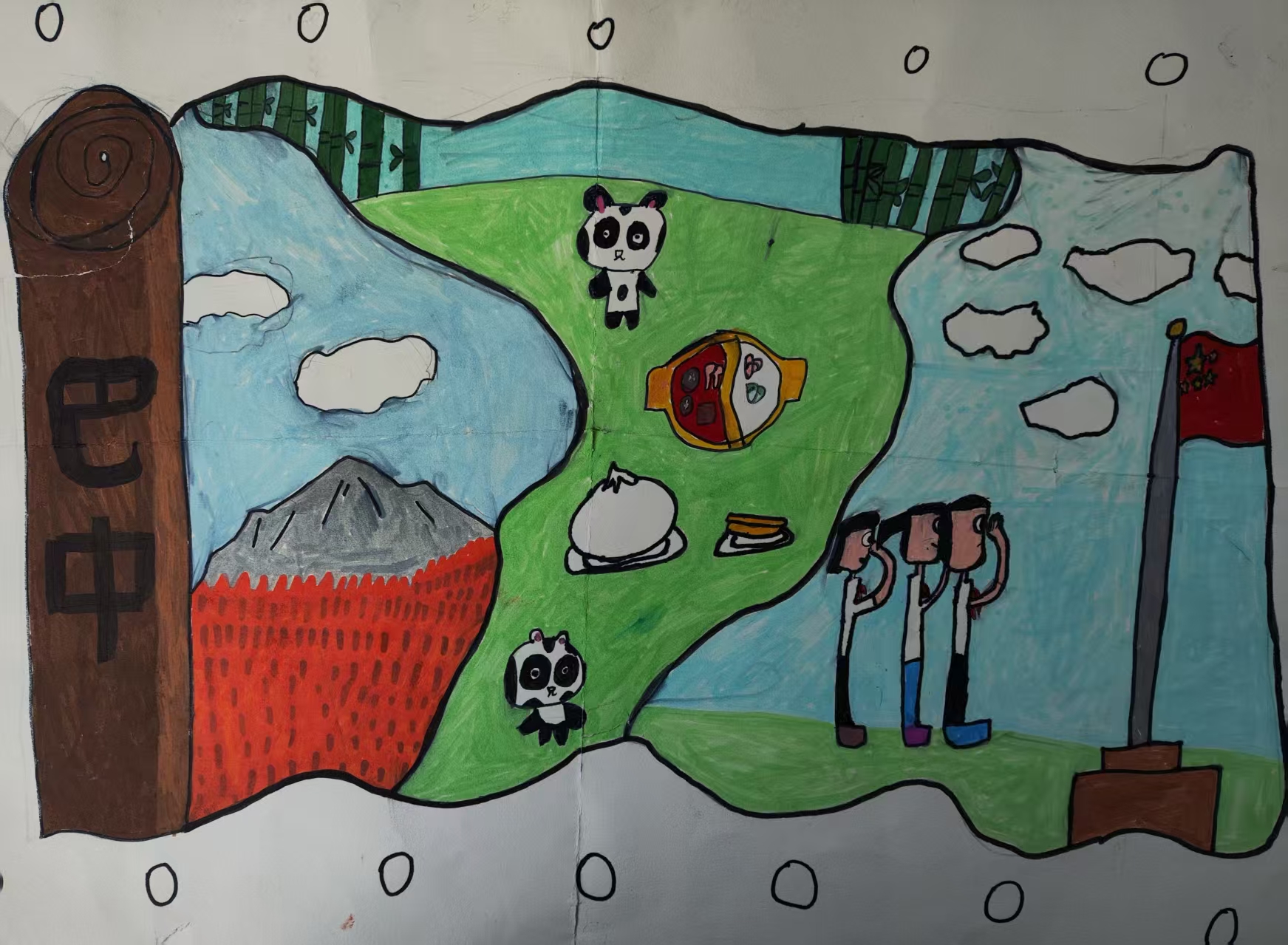 以 "巴中生活体验" 为核心,通过 "自然 + 文化 + 生活" 元素的融合实现表达: 用 "巴中" 标识、山水竹林锚定地域自然基底,以熊猫呼应本土文化符号; 融入美食元素传递市井烟火,结合人物、国旗营造乐游氛围; 借助手绘的童趣风格与场景化布局,将 "自然生态、文化符号、生活烟火、情感体验" 整合,既突出巴中 "山水宜居、食味宜人" 的特色辨识度,也传递出本土生活的愉悦感与多元元素的共生感。