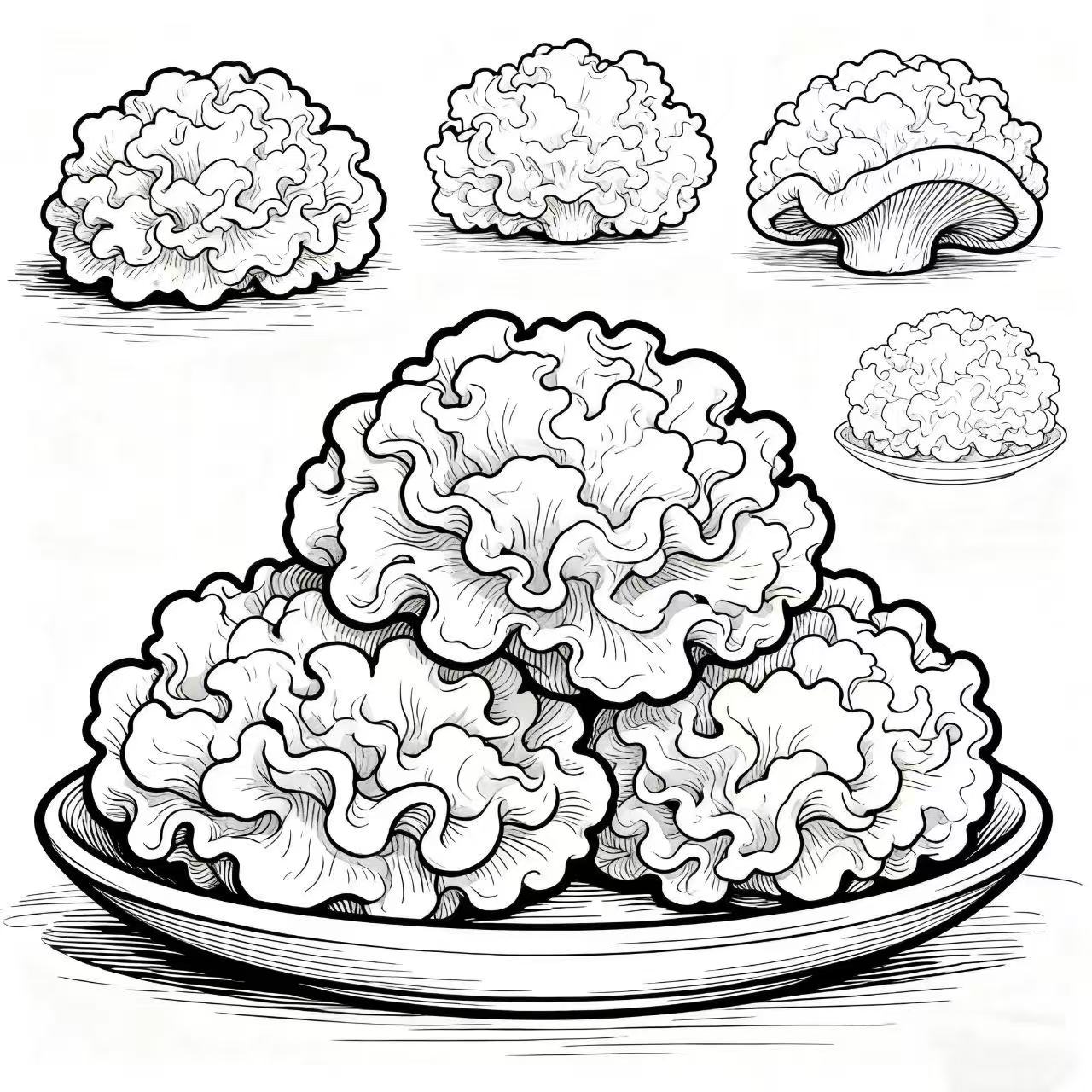 黑白灰的明暗处理,既保留了手绘插画的质朴温度,也以纯粹的视觉节奏,让绣球菌的褶皱细节成为视觉焦点——我们并非单纯复刻物种,而是以线条为笔,书写一种"日常食材里的自然诗意":那些被忽略的餐桌食材,本就是藏在烟火里的自然美学载体。