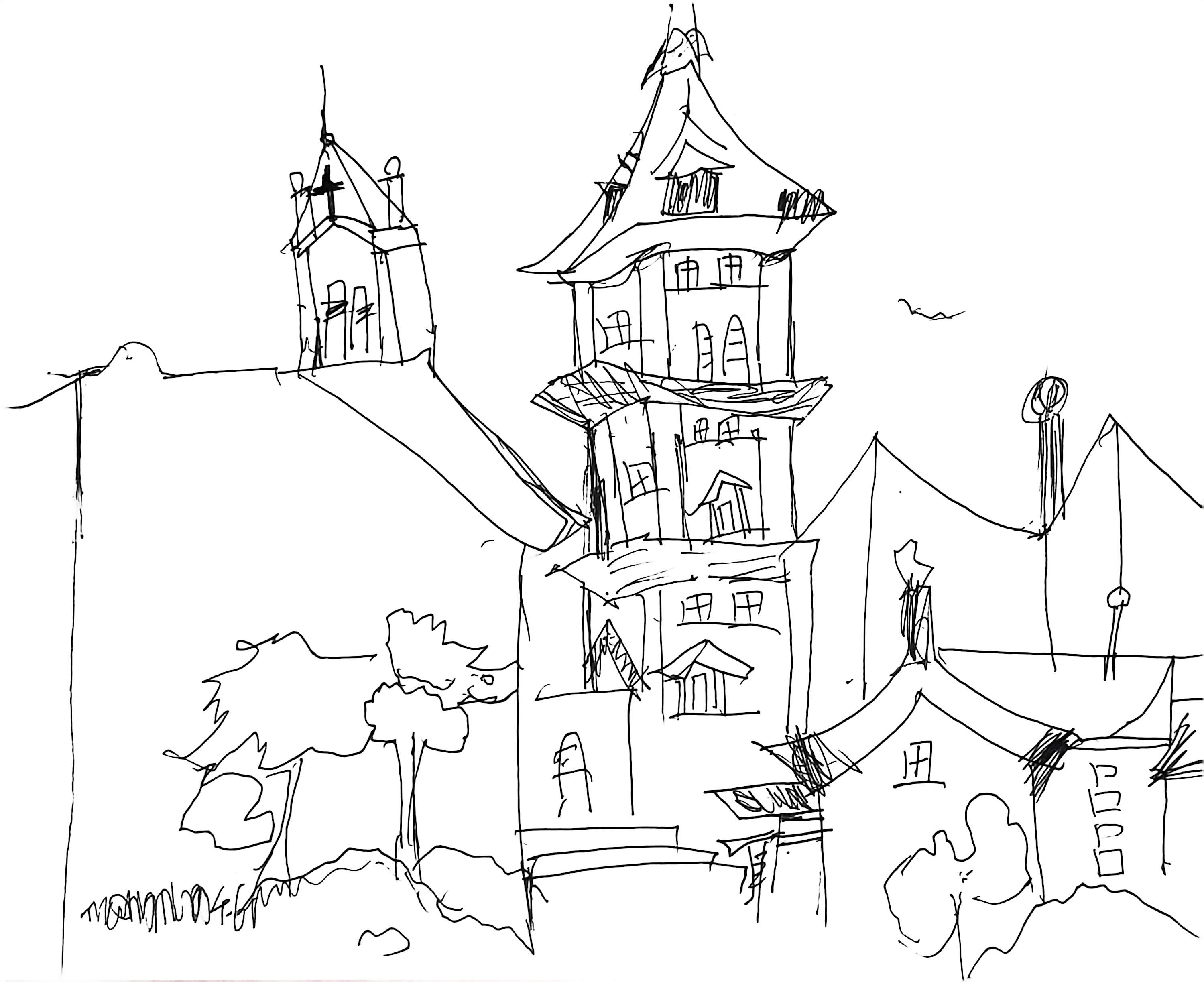 《幻城速写》:这幅钢笔速写,以随性线条勾勒出奇幻建筑群落。错落的塔楼、独特的屋顶,打破常规的结构,似从童话梦境中生长而出。简洁笔触藏着创作者的大胆想象,将现实与幻想糅合,每一笔都在邀请观者踏入这充满童趣与创意的建筑异次元,探寻线条背后的奇妙世界 。