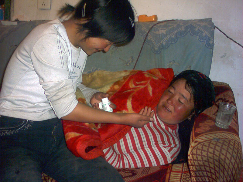 星期天,小芳的妈妈生病了,小芳在家中照顾妈妈。