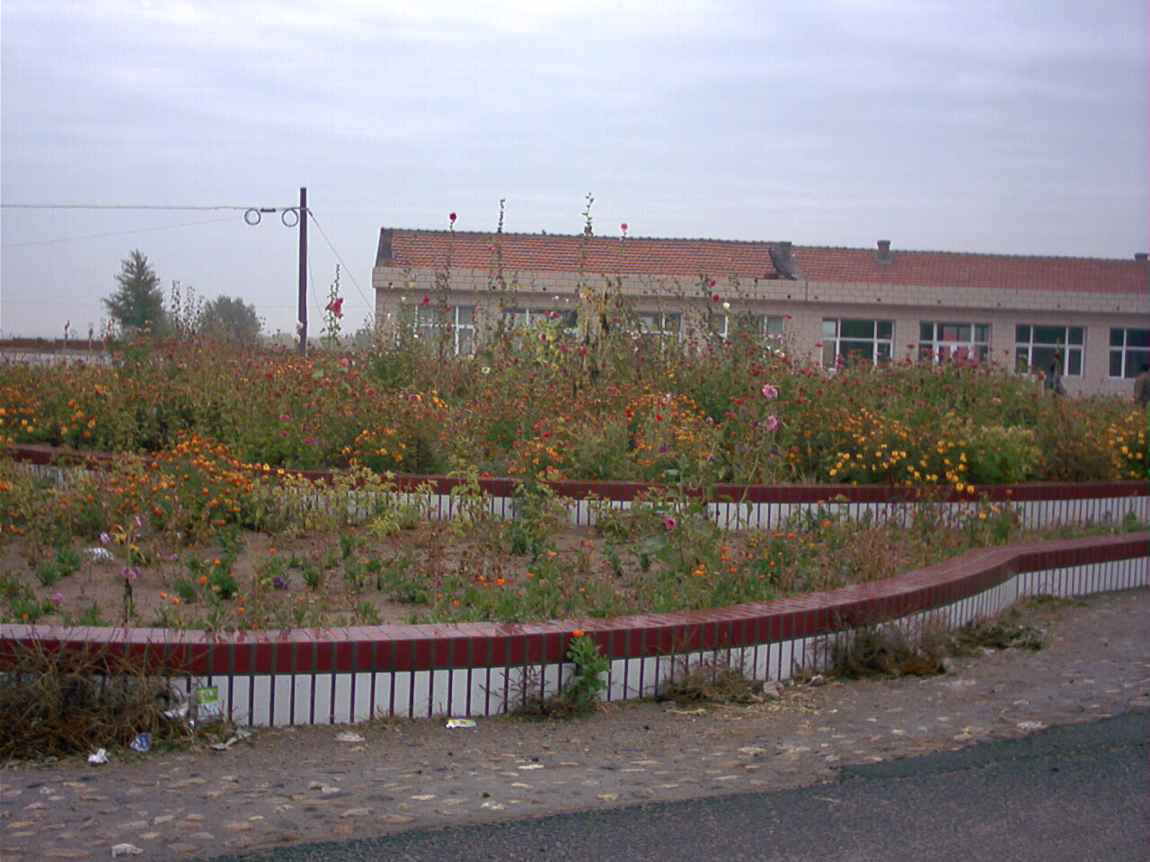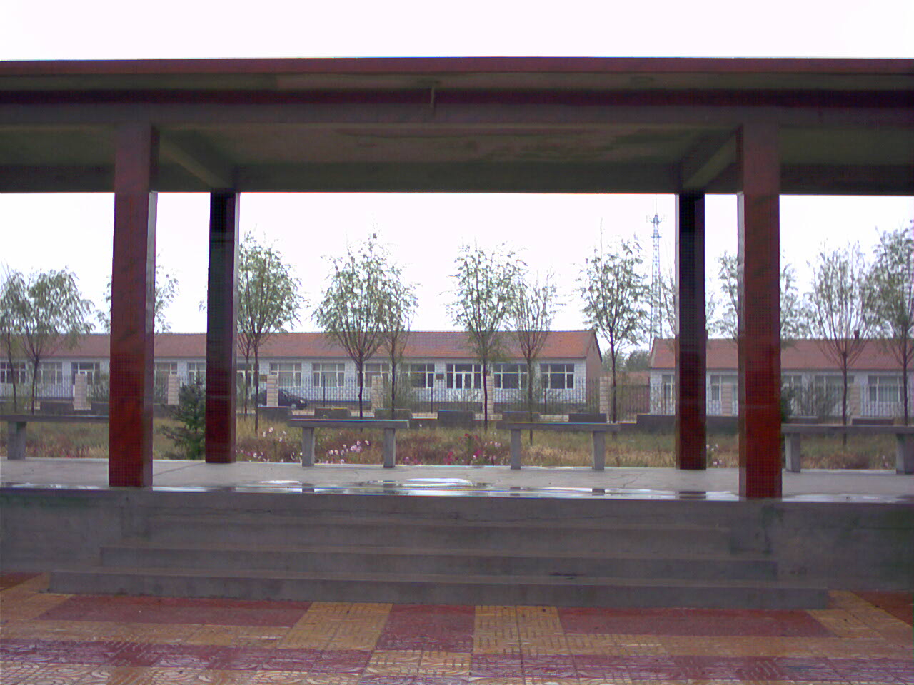 花坛的北边是一个凉亭,里面有石凳和石桌,是供人乘凉用的。