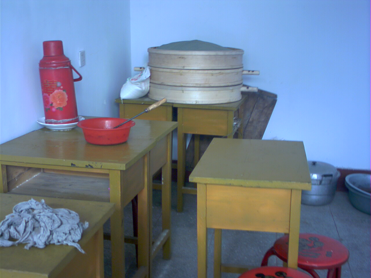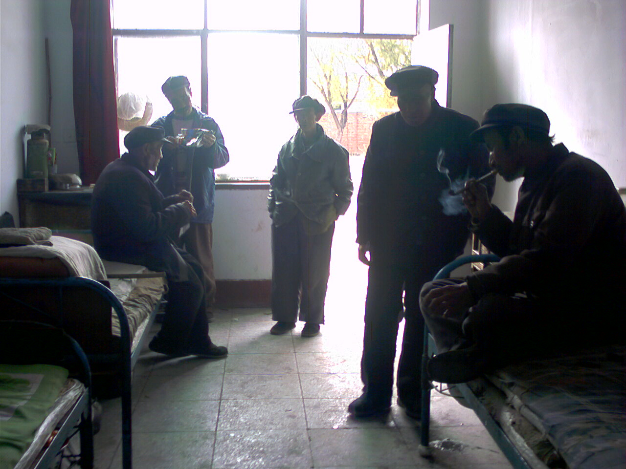 敬老院的食堂很窄小,可偏偏那些建筑工人把一间分成两间,空间更小了。伙房里摆放着蒸笼,蒸笼旁边是一个保温瓶。那些老人们在十多张桌子上吃饭,一吃完洗过碗就出去溜达了。