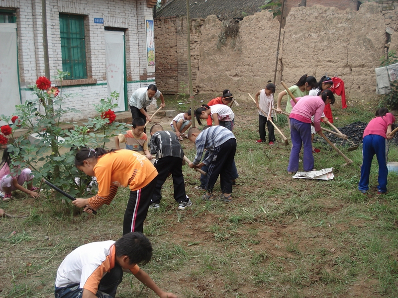 首先,管后勤的杨老师给每个班分配了任务,各班主任就召集各班同学站队,我们五年级的劳动场地在学校西边的教师宿办前,在郭老师的带领下,同学们高高兴兴地开始除草,郭老师让我们女生拿着工具从西边的开始,男同学主要填埋暑假遗留下来的坑道。同学们争先恐后地占领位置,个个奋不顾身,不怕日晒汗淌,一大片杂草在迅速地减少。