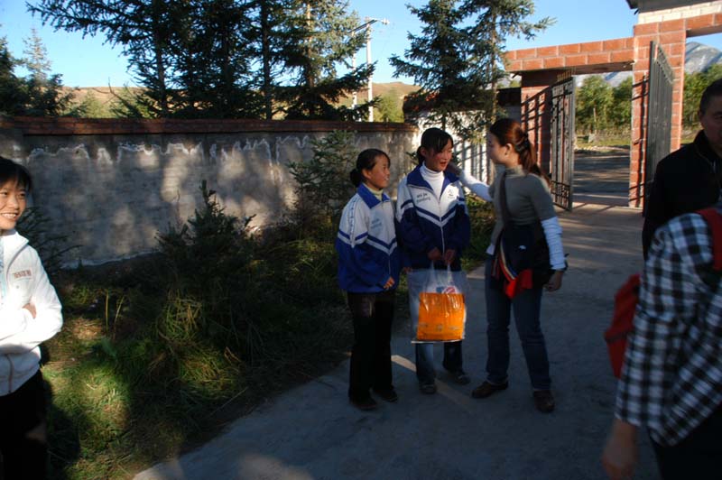 9月26下午,这批尊贵的客人向我们走来。三位阿姨,一位叔叔,一位姐姐和一位哥哥。他们可热情啦!刚下车,还没来得及卸下自己的大包包,就握着我们的手向我们问好。我们还从来没见过外国人呢。我们用自己生硬的英语跟他们对话,尽管我们的交流很困难,但我们的心灵彼此沟通着,我们很兴奋。