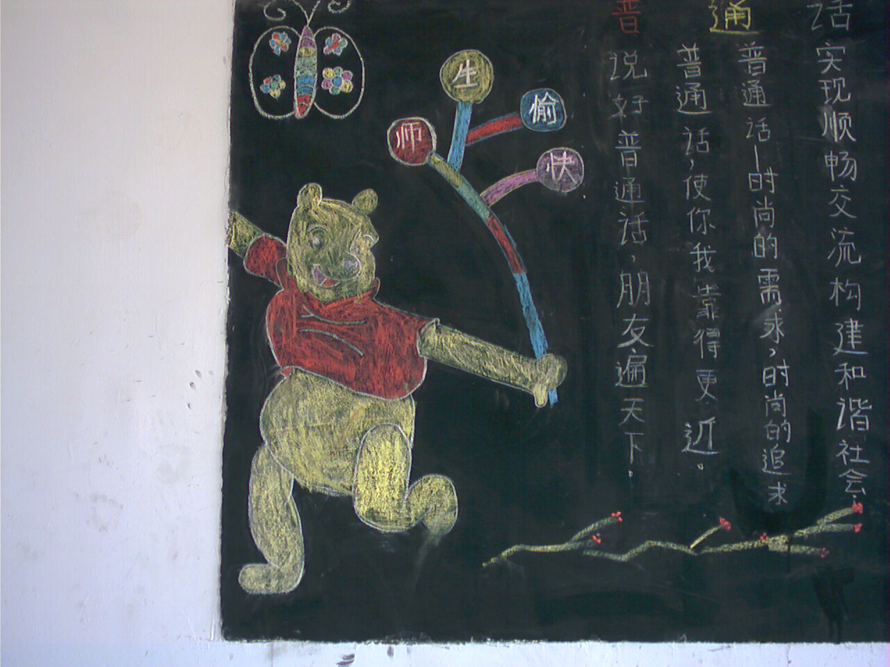 我们教室还非常漂亮,墙的右面贴了许多我们自己画的画,很好看。课余时间,我们总爱看看我们的得意作品,只要是好的,老师就会把你的作品贴在墙上。