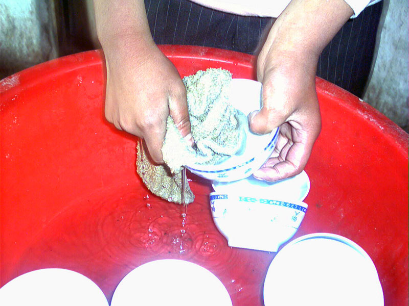 最后姐姐说:“还要把碗再涮一遍,把桌子擦干净”。姐姐真行,得听她的。于是,我重新打来一盆水,将碗一个个涮干净,又把桌子擦的干干净净。