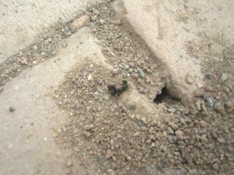 在我们学校的操场上,有不少蚂蚁巢。蚂蚁巢周围都有一圈环状土堆,这就是它们的"防洪大堤"。土堆中间则有一个黑黑的小洞,大约有筷子粗细。小蚂蚁就是从这洞中爬出爬进的。这就是蚂蚁靠自身力量搭建的家。