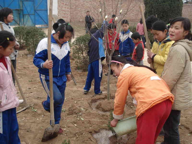 中午,带来工具的同学们集合在教学楼前等待史校长分配任务。史老师强调了安全注意事项后安排起来:六年级部分男生在班主任王秀侠老师的带领下去栽教学楼前的雪松;剩余男生和全部女生在王永刚副校长、李改民老师的带领下去栽校门内西边的四棵小叶女贞树、一棵红玉兰大花树和几十棵小冬青树;我们五年级同学的任务和六年级女生差不多,在我们班主任郭老师的带领下植校门内东边的花树。相对而言,我们任务比较轻。