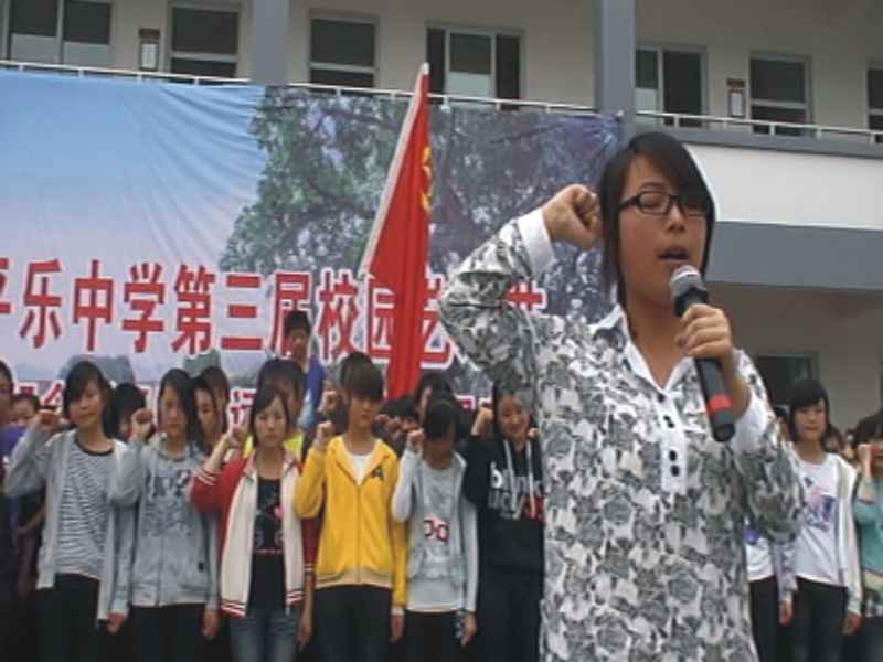 我们首先按照预订的时间,来到指定地点就座,整个校园都沸腾起来了!首先出场的是四位主持人,只见他们个个衣着艳丽服饰,脸上挂满了微笑,用富有磁性的声音宣布整个节目的开始。节目的开场舞是《火》,十多个衣着美丽,打扮亮丽的妙龄少女在热情的歌声中跳起了青春的舞曲。舞毕,赢得了台下观众的阵阵热烈的掌声。接下来举行了新团员入团仪式。紧接着又是一曲曲优美的舞蹈和悦耳动听的歌声,和着台上的轻歌曼舞,台下的观众的激情也被点燃了。