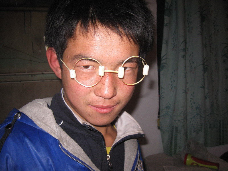 对于充满了幼稚和好奇心的我来说,我做的眼镜真是既简单又实惠。路上的行人来来往往,总是能看见有人戴着用铁棍把玻璃框起来的东西,不知道它是什么东东,又为什么要戴那个东东,不过,看起来倒挺好看的。如果我戴着一定很好看吧。于是,我就跑回家问我爸,“爸,您有没有他们眼睛上戴的那个玻璃片?"