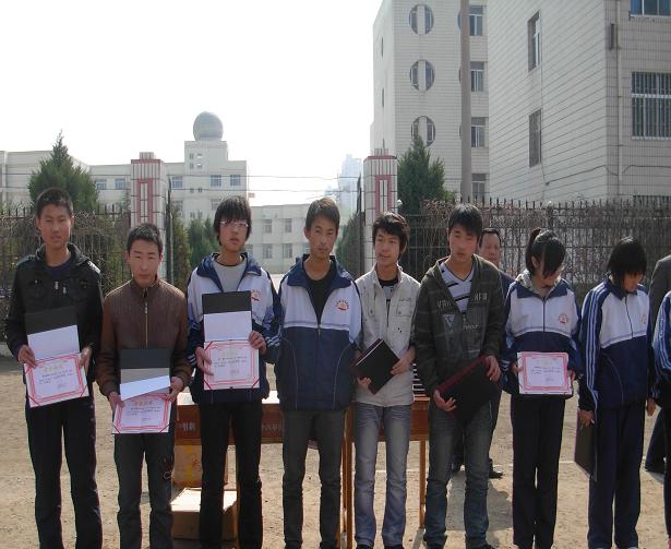 这几个是高一的小师弟和师妹。看这阵势才颇显男儿本色啊!虽然年纪比我小,可是人家也站在这光荣的位置上。相比之下,我是自惭形秽啊!什么都不多说了,自我勉励吧!