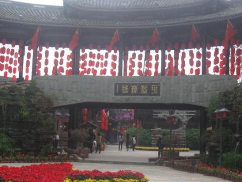 这里所有的房屋建筑与布局都是按照古典园林修建,置身于中就像瞬间穿越进了盛唐,连空气中都透着丝丝繁华。古老的事物总是会让人怀念起某些记忆深处的东西。看,那一个连着一个,一串挤着一串的红灯笼好像小时候尝过的冰糖葫芦,望着望着就会忍不住吞下口水。还有那各式各样色彩缤纷美得让你动心的商店招牌,"在云端"、"彩云间"、"凤穿牡丹"、"刀剑笑"、"避凤塘"、"上院"、"散花书院"……让你不禁幻想,这么好听名字里究竟卖得是什么天上少有、人间无双的好东西呢!