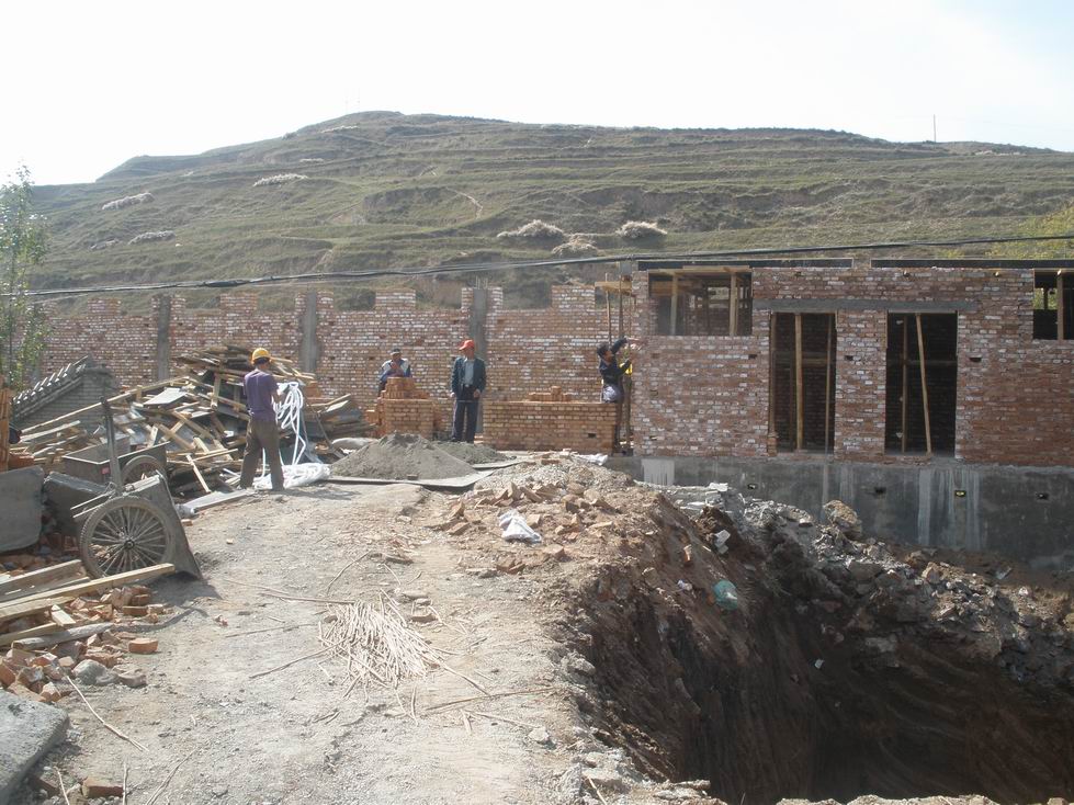 走进校园就会看见正在修建中的教学楼,校园的北面正在修建两幢教学楼,让我们兴奋不已,现在已经把旧厕所拆了,搭建了一个临时厕所。反正是校园里到处都是钢筋、水泥和正修建的教学楼。