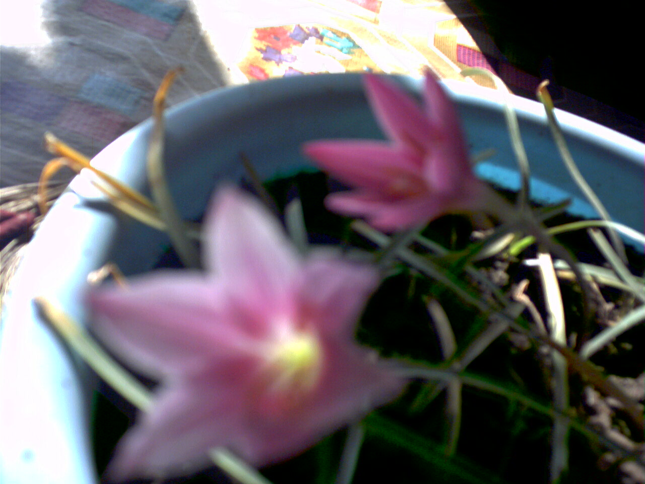韭菜莲开花最茂盛的时候是在10月中旬,花开了,粉红色的花瓣里裹着黄色的花心,可好看了。