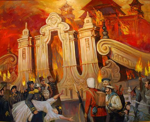 在19世纪到20世纪之间的中国,是一段屈辱的历史。鸦片战争,八国联军侵华战争,中日甲午战争等等,给中国带来了深重的灾难。特别是八国联军侵华战争,他们在中国烧杀抢掠,无恶不做。就连圆明园也不放过,他们在圆明园"拿"出的宝物,只能用天文数字来计算。他们用了几个月的时间才将从圆明园抢来的宝物运完。为了掩示他们的罪行,还一把火将圆明园烧了个干干净净。让中国人引以为荣的圆明园就这样毁在了帝国主义手下。