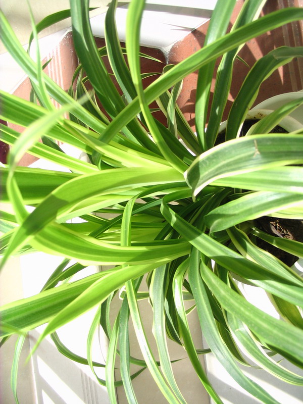 吊兰一年四季常绿,在雨水多的季节里生长最快。现在,它的藤条都已经长过40厘米以上了,非常的多姿多彩、美丽、健康。一盒小小的吊兰,长到一定长的时候,就可以从偏长的叶子中间长出美丽的小红花。