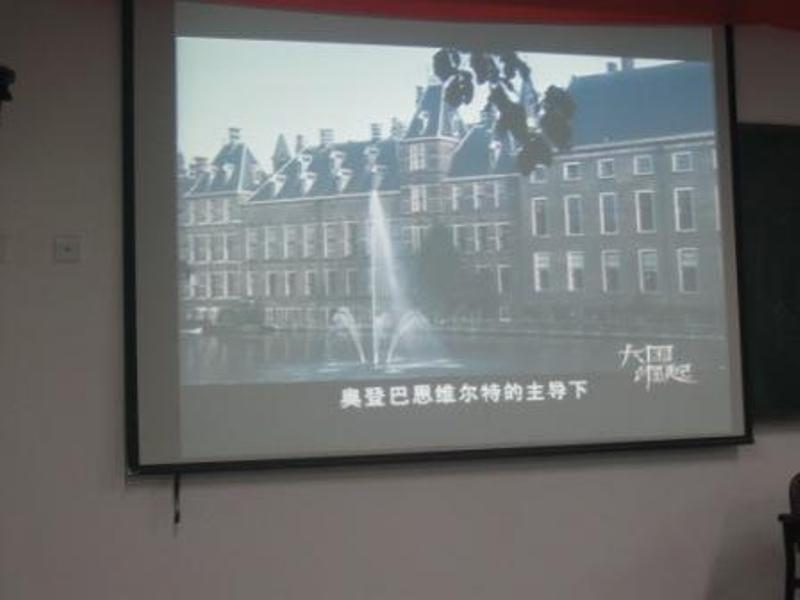 《大国崛起》是一部大型历史记录片,记录讲叙了包括西班牙、葡萄牙、荷兰、法国、英国、美国等国家的重要历史发展历程。我们今晚观看的就是其中一集《荷兰——小国大业》,讲述的荷兰从15世纪新航线开辟后由一个小小岛国发展成为有"海上马车夫"之称的霸主的历史故事。在美仑美奂地外哉风光下,精炼简洁的讲述中,同学们津津有味地汲取着电影中流露出来的史实信息,聚精会神地欣赏着屏幕上不断切换的画面。随着王权的更替,矛盾的激起,战争的爆发,情节的高低起伏,同学们时而愤愤不平,时而深思,时而惊叹……完全沉浸在历史的精彩演绎中。