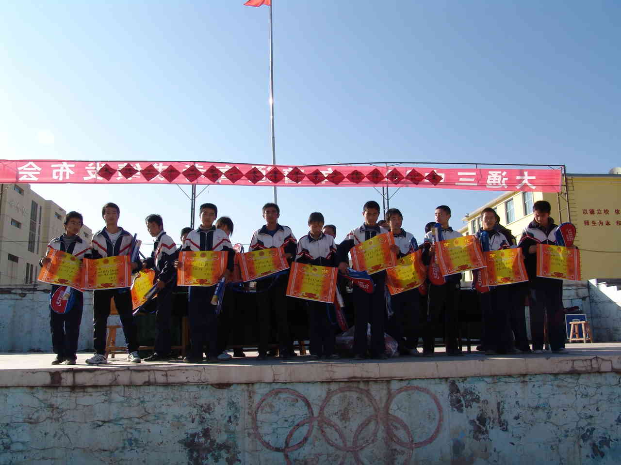 初中部的下来就是我们高中部的了,我们作为初中生的大哥哥大姐姐,当然不会失去我们的风采,我们踏着铿锵有力的步伐迈入赛场,我们整齐的动作赢得了初中部的掌声和喝彩。
