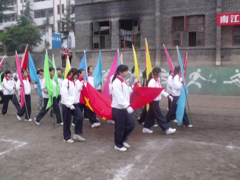 8点,一切准备就绪,工作人员各自归位。彩旗队率先入场,依班次按序入场,班主任各自跟班到位。班牌手高举班牌,昂首阔步,向所有人展示班级的风采,运动员们朝气蓬勃,大步向前。进入场地后,彩旗队彩旗飘扬,欢迎各位学校领导入场。
