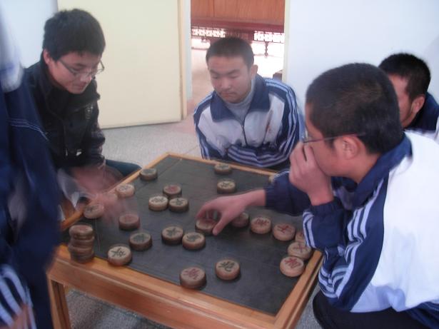看样子,这盘棋杀得真起劲,围观的同学们,也跟着一起琢磨,下一步走哪一步好呢?