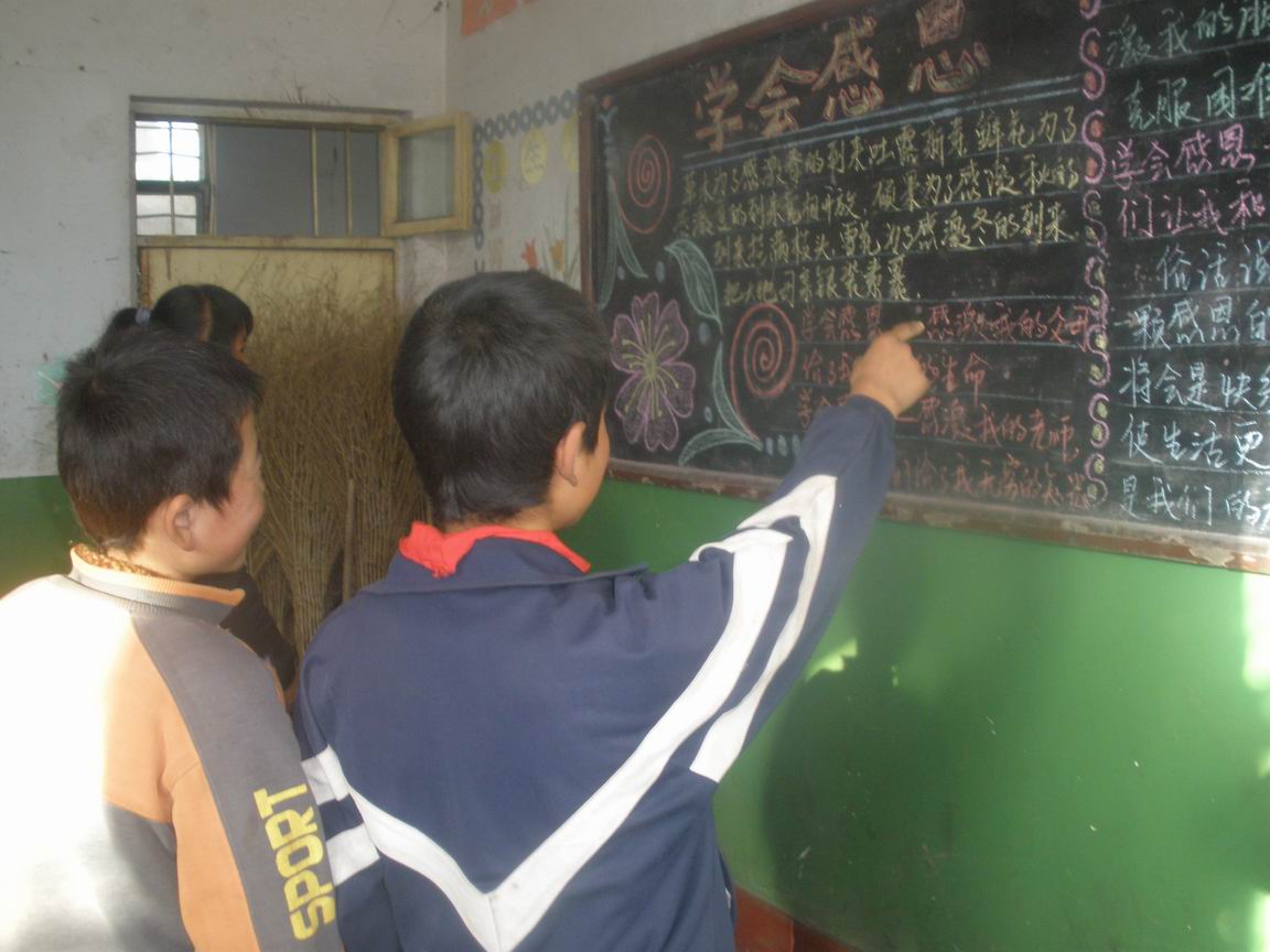 黑板报终于办好了,大家纷纷来争着看板报,黑板左下角画着一朵艳丽的鲜花,正中写着四个大字:"学会感恩"。内容很丰富,告诉我们在生活中要学会感恩,妈妈——你给了我珍贵的生命,我感谢你。老师——您给了我无穷的知识,我感谢你。朋友――你给了我克服困难的力量,我感谢你。