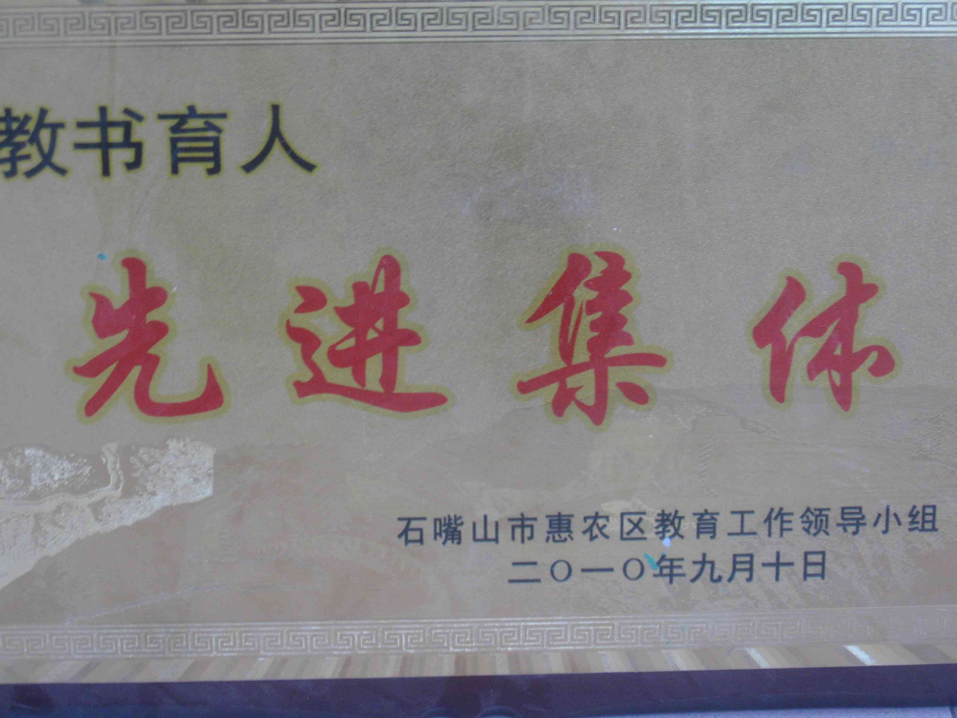 与此同时,在2010年9月10日,我们学校又获得了先进集体的称号,这说明我们学校是一个积极向上,积极进取的学校,更是学校不断发展的象征。
