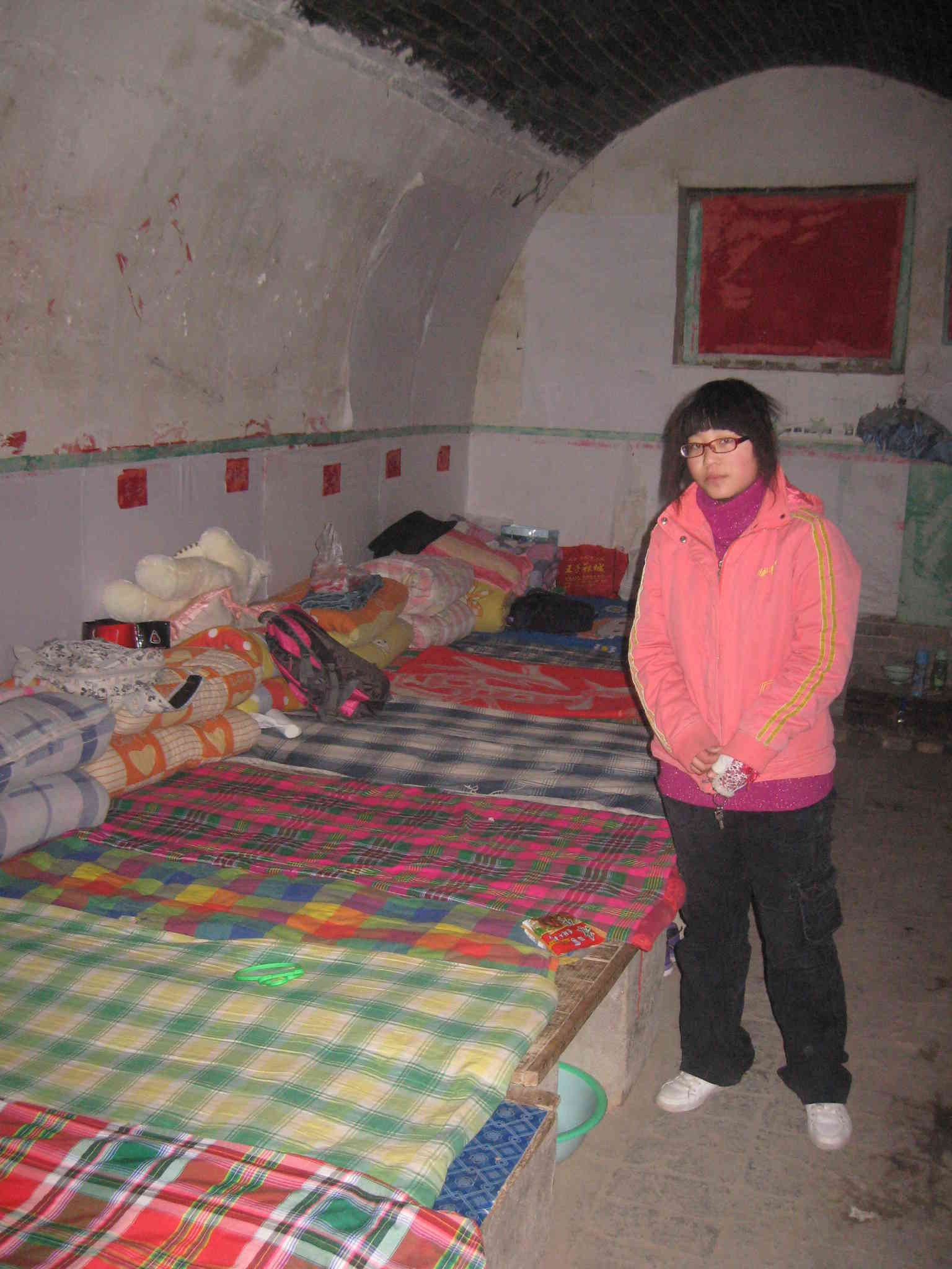我们上王镇比较贫穷,学校设施也比较简陋。刚开学,我们入住的竟然是一排排破窑洞。我们一看,顿时傻了眼:陈设简陋,破旧不堪 ,而且阴暗潮湿,又窄又小。天哪!我们今后就住这儿啊。我们宿舍十三个人,可只能放七块床板,就别提一晚上的折腾劲了。不是这个嫌这个占地大,就是嫌自己占地小,早上起来,每个人脸上都挂着黑眼圈。