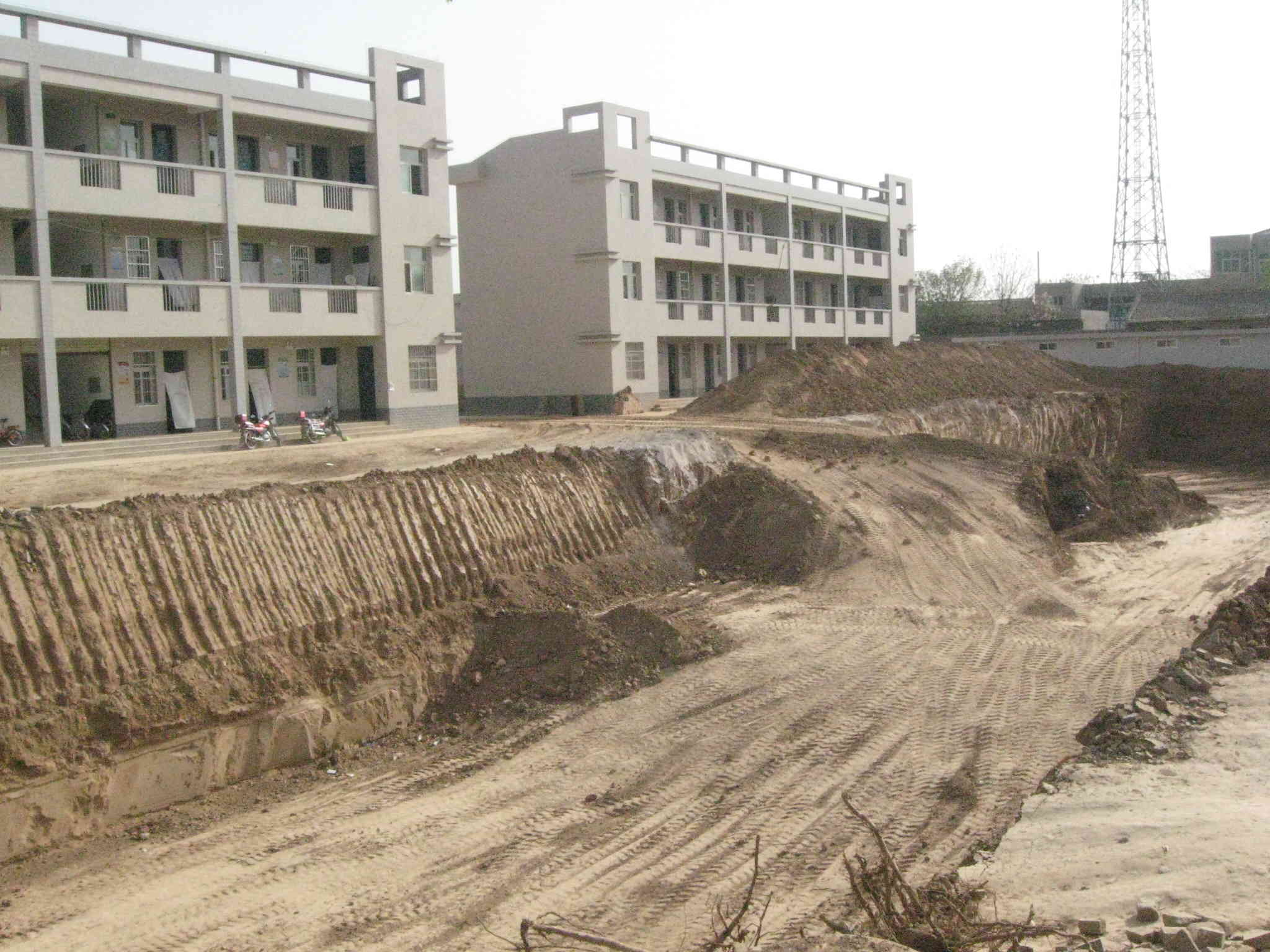 看!两栋新宿舍楼正傲然屹立在我们学校中央呢,遥想我们学校的未来将无限美好!我们富强的祖国不忘我们,我们要以优异的学业成绩回报她,将来建设她!