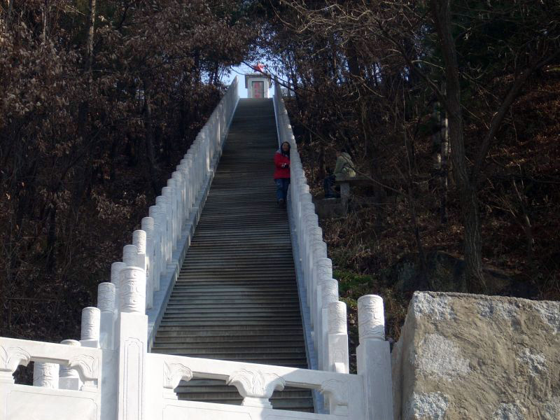 远远地,就可以看见,烈士碑屹立在山坡之上。细雨中,那颗五角星格外的红,旁边的松树也被雨洗得一尘不染,今天的梯子好像格外的高,但是,我们还是走了上去。