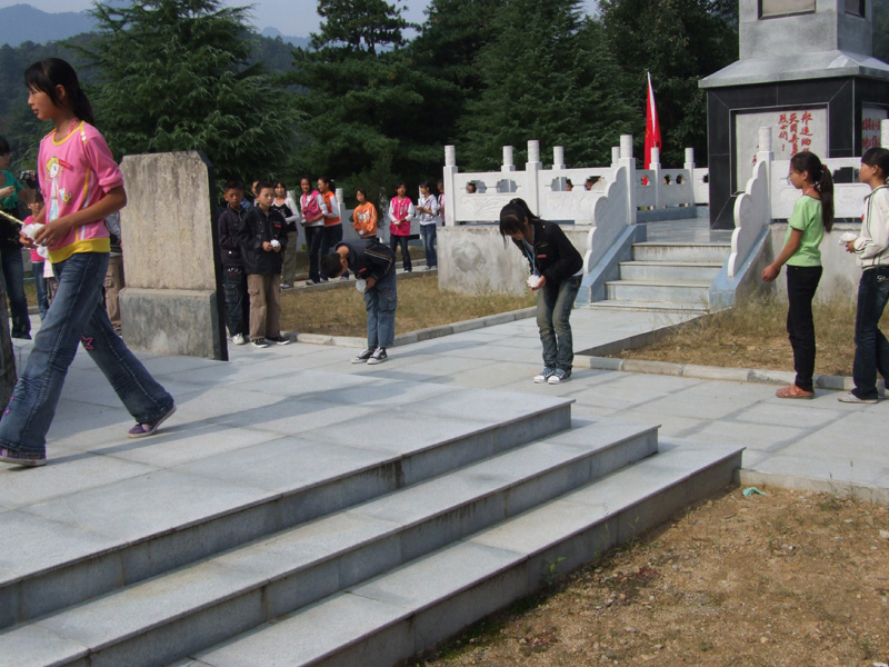我们排着整齐的队伍向前走去,远处的山被一片片朦胧的雾笼罩着。或许,天见证了烈士当年"抛头颅,撒热血"的场面,而今天,虽然烈士已离我们远去,可是上天不会忘记,我们也不会忘记,因为,历史总定格在那一刻。