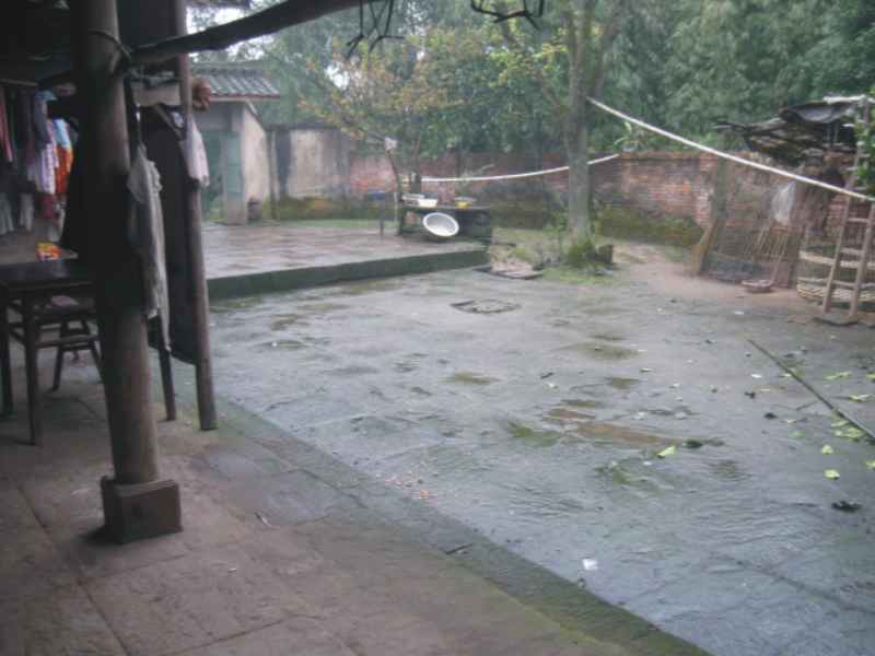 一大清早,天公就不作美,下起了蒙蒙细雨。朦朦胧胧的春雨加上氤氲在房顶的炊烟构成了一幅朦朦胧胧的画面。庭院里的石板都长满了青苔,上面还零星地点缀着几片老树叶,给人一种寂聊、清幽的感觉。偶尔还会有一两只淘气的小鸟息休在石板上,东望望,西啄啄,蓦地一下又飞走了。