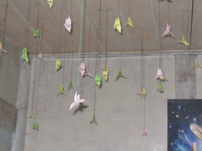 传说中,鹤在古代的寓意应该是吉祥瑞意,是很好的象征。我可不管它什么好不好地,只要漂亮就可以。我为了装饰卧室内的天花板,硬是熬更打夜折叠了约摸70只千纸鹤,耐心地一个个穿好挂在天花板上。还别说,真的有那么一点诗意的韵味。