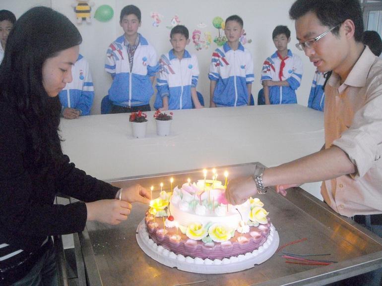 今天下午班会课,德育办组织了全校在26多名5月份过14岁生日的同学,在现代媒体室为他们开展了生日Party活动。