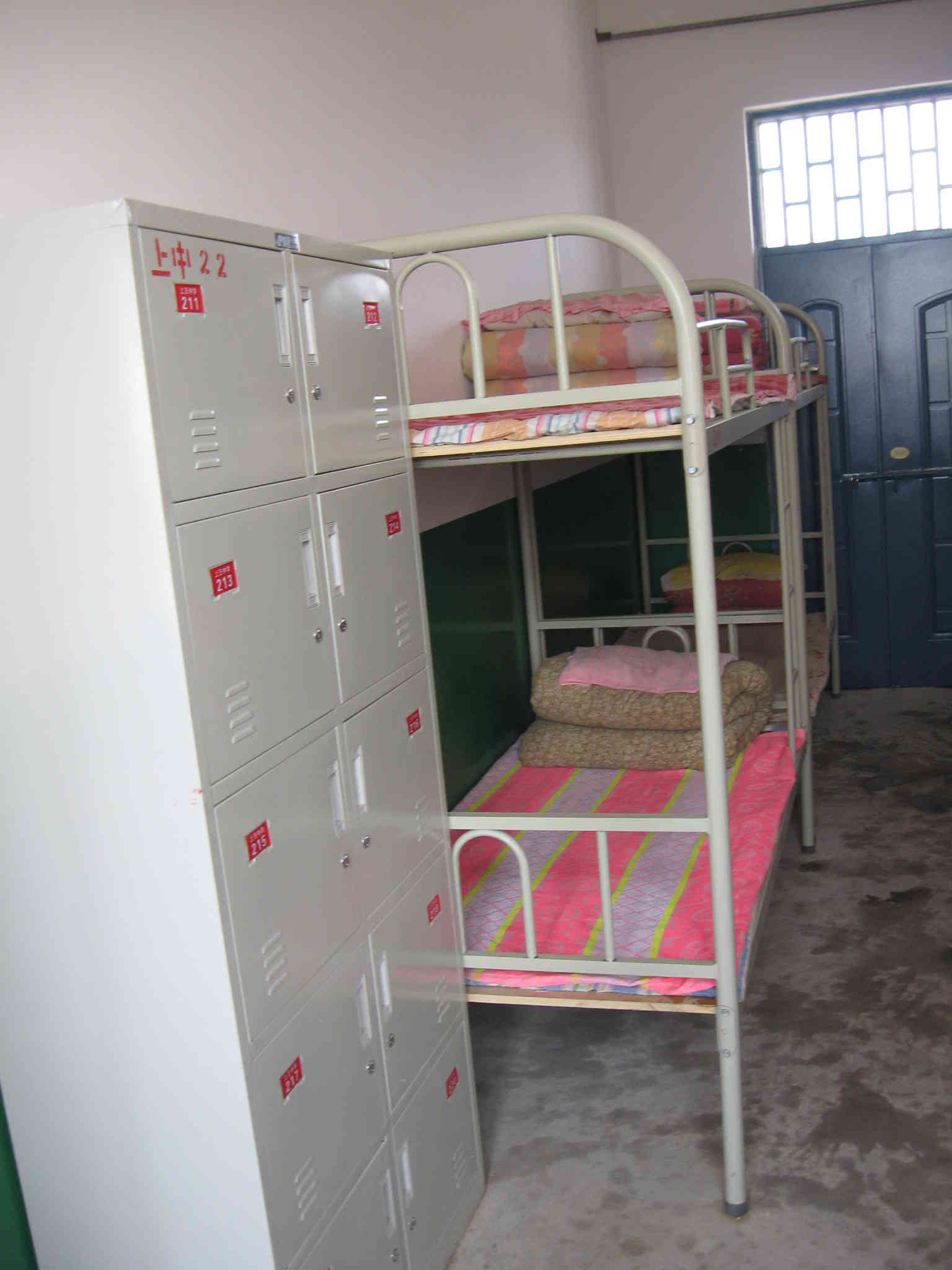 再看看我们的新宿舍楼,它高三层,用坚硬结实的 水泥板和钢筋做成的,外面用漂亮美观的白色和蓝色的瓷砖装饰,显得干净素雅,从外面看真是太漂亮了!再看宿舍里面,里面的墙壁雪白雪白的,从底下往上一米高是用绿色油漆涂的,门和窗子都是新式的,整个房子窗明几净,宽敞明亮,真让人心情舒畅啊!每个宿舍里面有两个电棒,有五架两层的架子床,每张床上睡一个人,真是舒展啊!里面还有一个大大的铝合金做的保险柜,有十个柜子,我们就把自己的东西放在里面,既安全又方便。最让我们高兴的是宿舍里面安装着暖气,这下到冬天我们再不用受冻了,可以睡个安稳觉了,也可以放心的学习了。