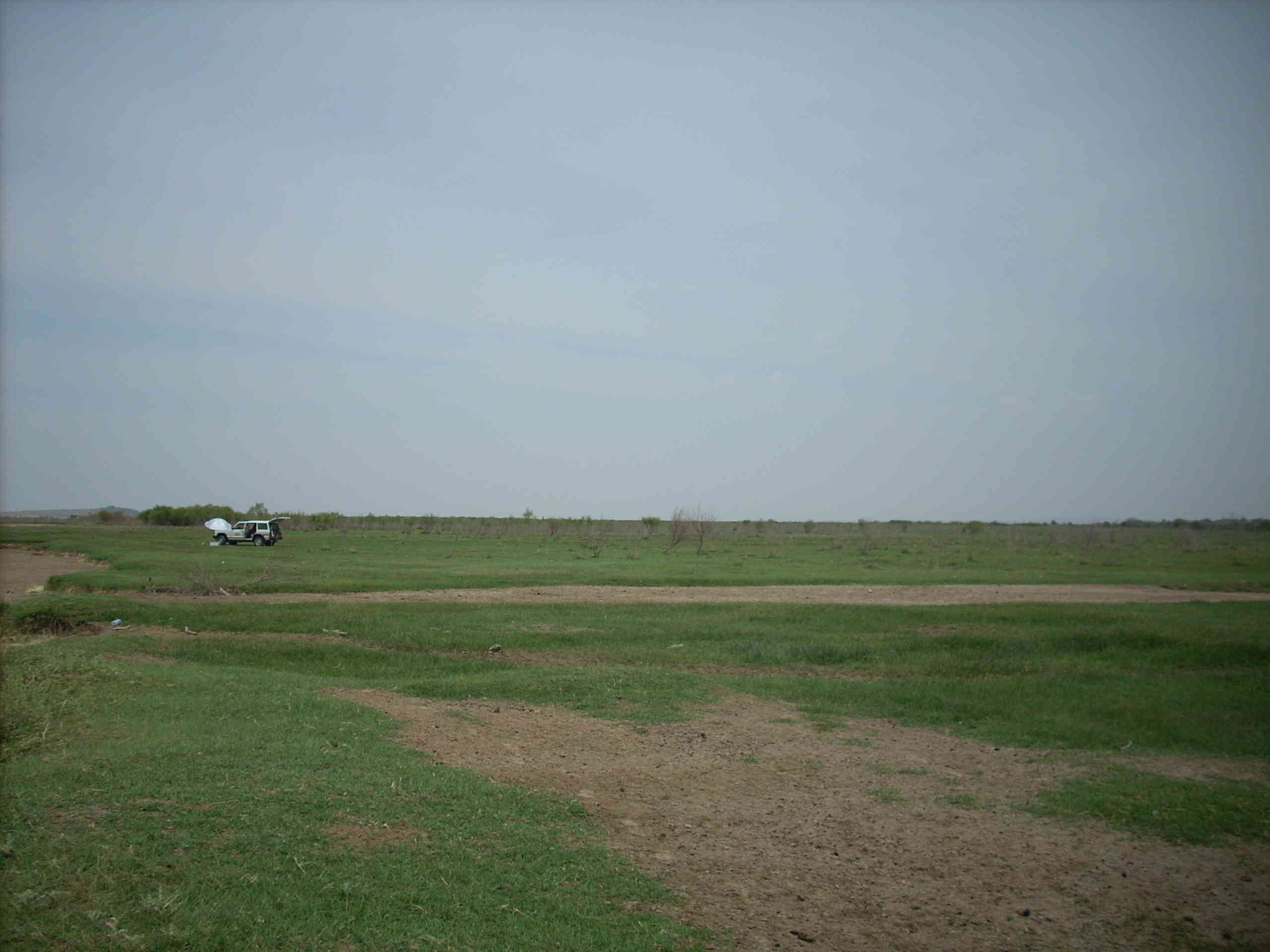 看看河岸边的草场,绿油油的,一片水草丰美的景象。以前河岸边的河滩常常被水淹没,河岸边全是水,人想进入是很难的。现在水少了,草多了,人和车可以轻松地进入,这可不是什么好事啊。不知道明年我们再来的时候会成什么样子......