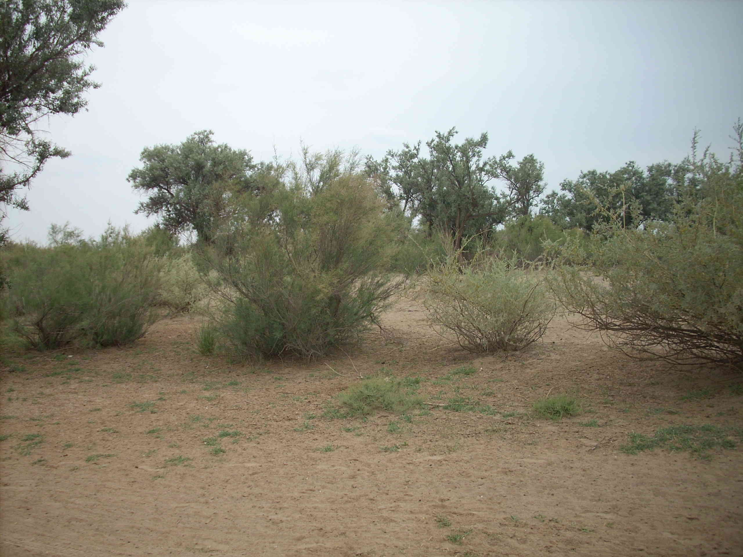 河滩不远处的沙丘上长着民勤特有的几种抗旱能力特强的植物,有沙枣树,红柳,还有毛条。这几种植物就是民勤劳动人民本色的真实写照:勇敢,勤劳,顽强不屈。