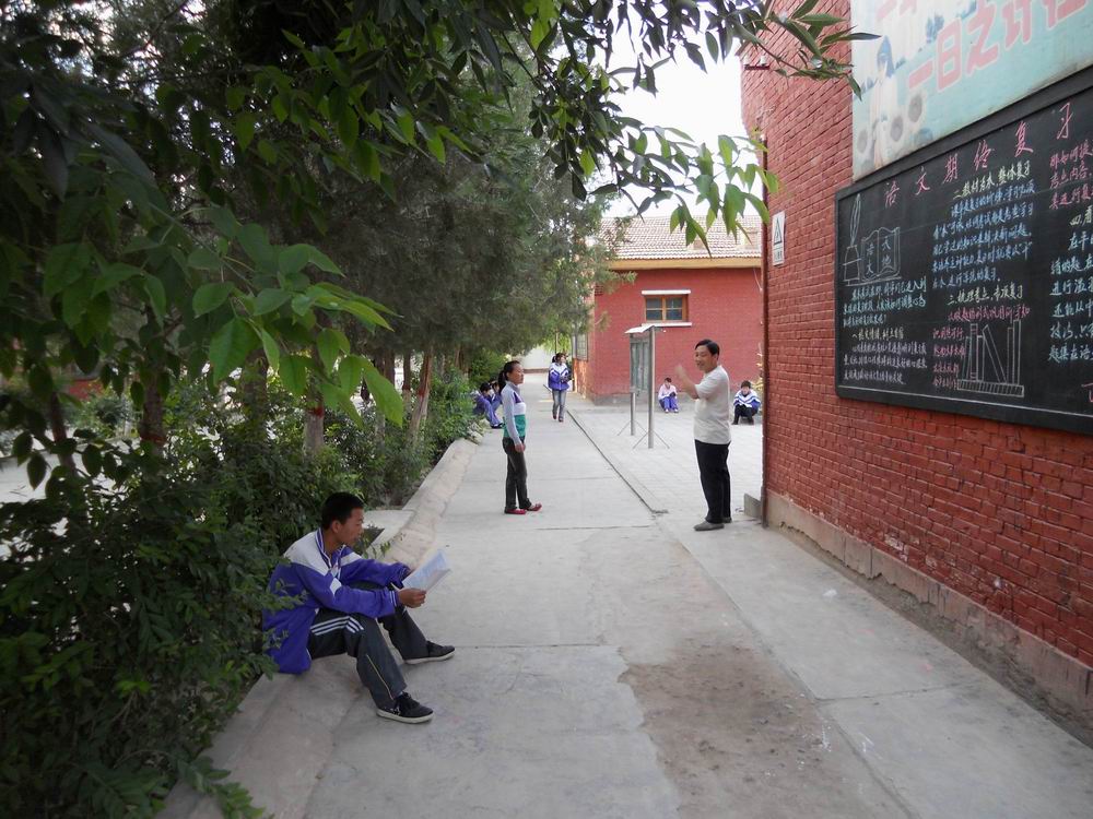 我们的校园座落在民勤县重兴乡下案村二社的地盘上。来自一群西部的老师们就在这里工作、学习和生活。虽然我们的平均工资只有二千元,面对日益飞涨的物价,我们每个人并没有怨天尤人;尽管西部学校的待遇比较低,我们每个人并没有消极怠工;而是以平和的心态,饱满的精神状态投入到工作中。我们的校园是一部五彩缤纷的生活剧,演绎着我们的喜怒哀乐,记录着我们的酸甜苦辣。清晨,当第一缕阳光投进校园的时候,可爱的老师们已经开始指导学生背诵、记忆。听,院子里、马路边,到处传来朗朗的读书声。