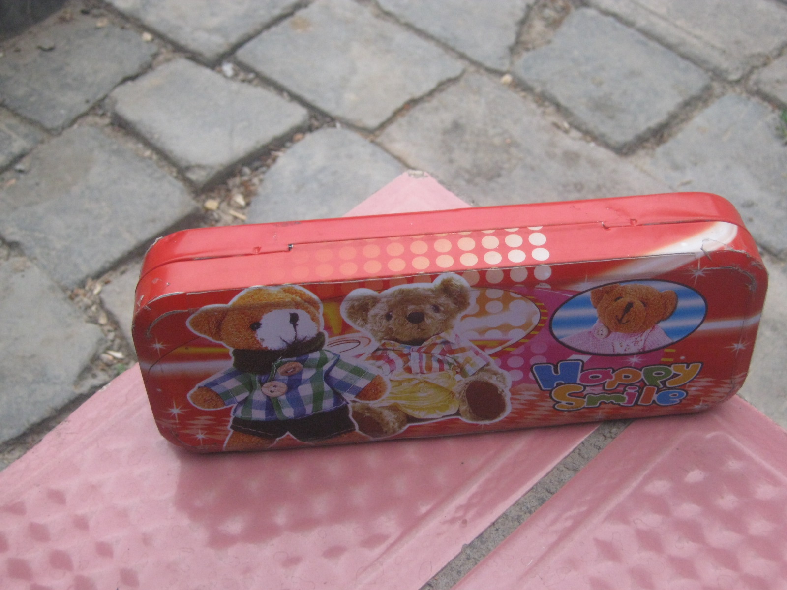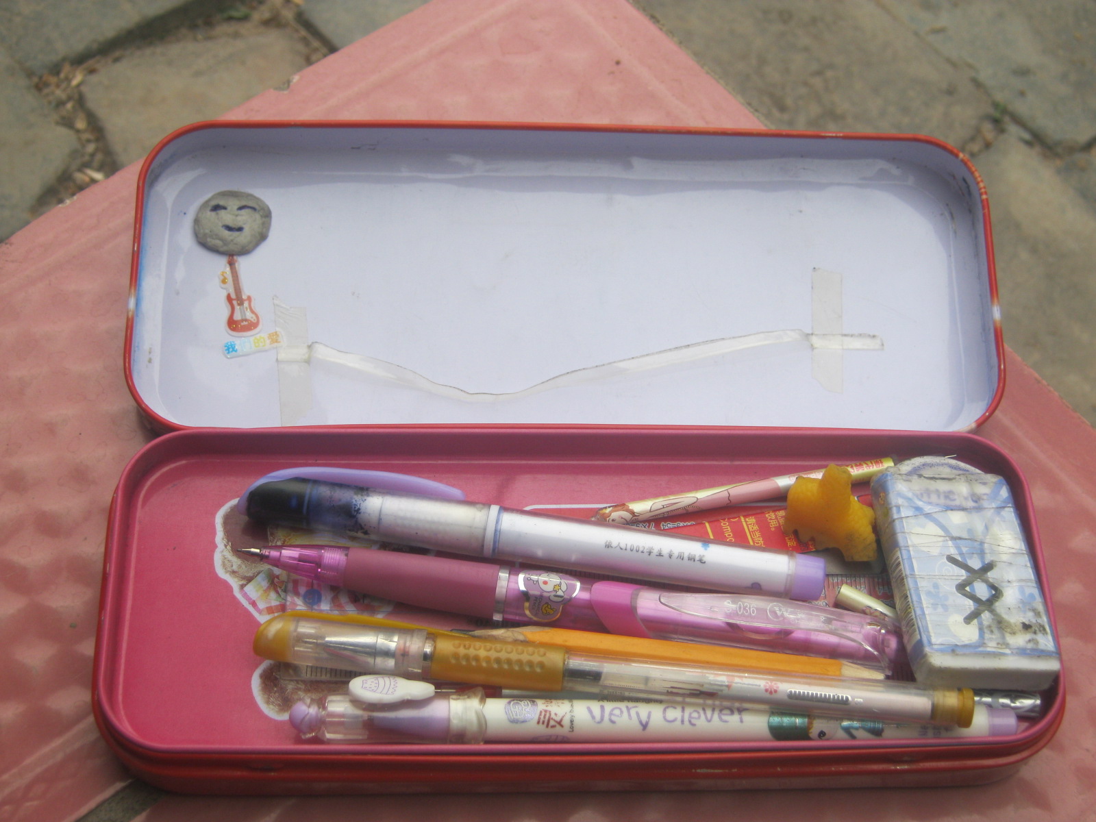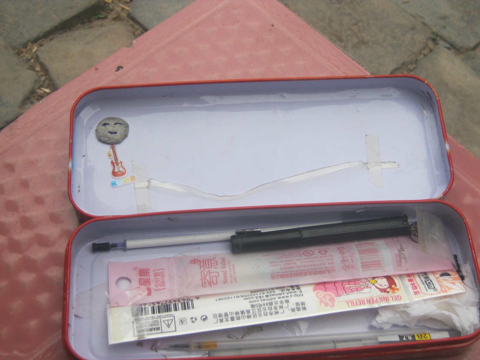 在2011年,我妈妈给我买了一个铁皮文具盒,是一个红颜色的,表面上有两只布熊猫,特别可爱。我很喜欢我的文具盒。它是一个上下共有两层的文具盒。从下往上数。第一层里面只有圆规、胶带和一块大橡皮相依为命;第二层里面放的学习用具很丰富,有钢笔、圆珠笔、铅笔、铅蕊、尺子、橡皮等学习用具。