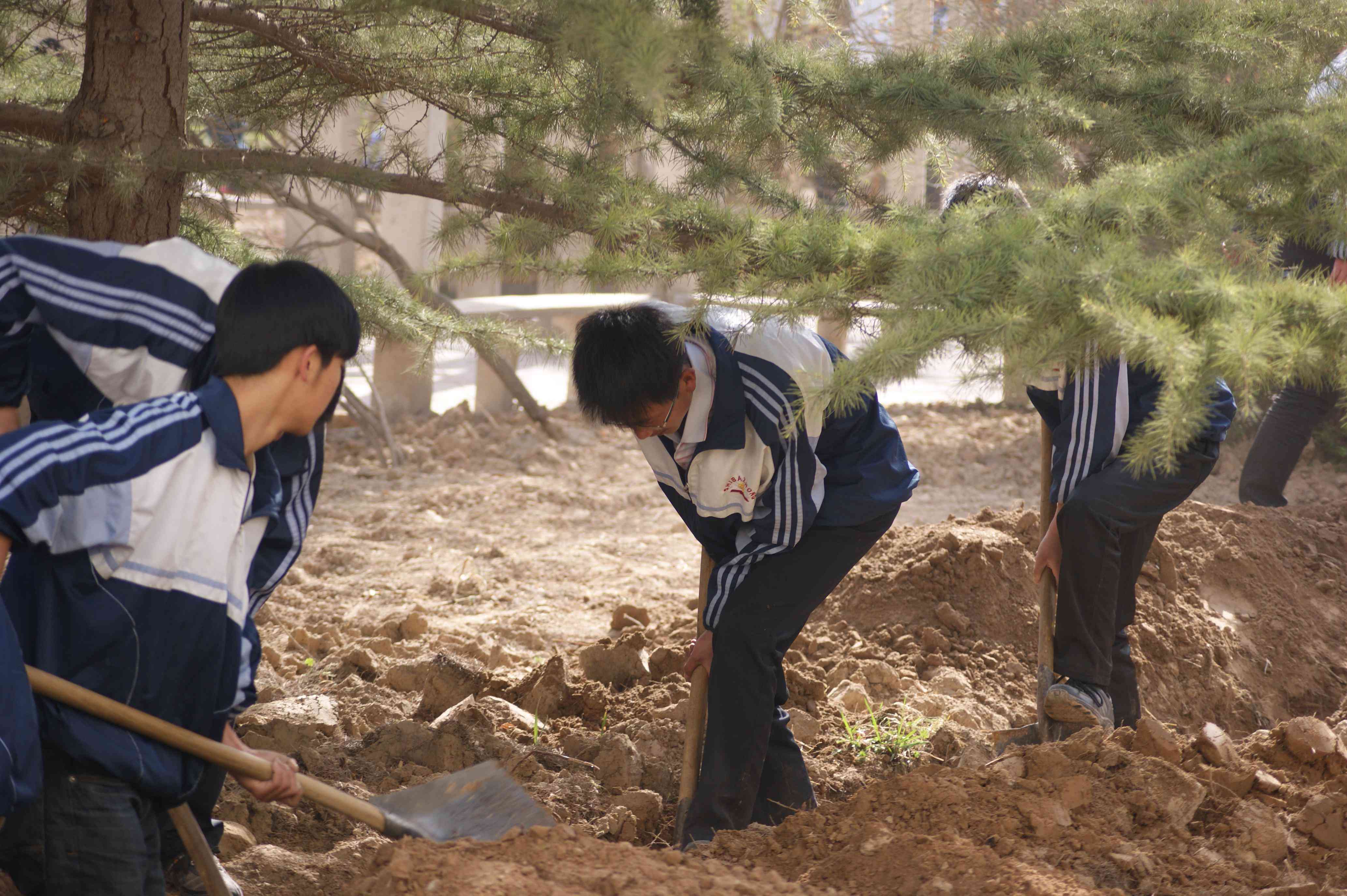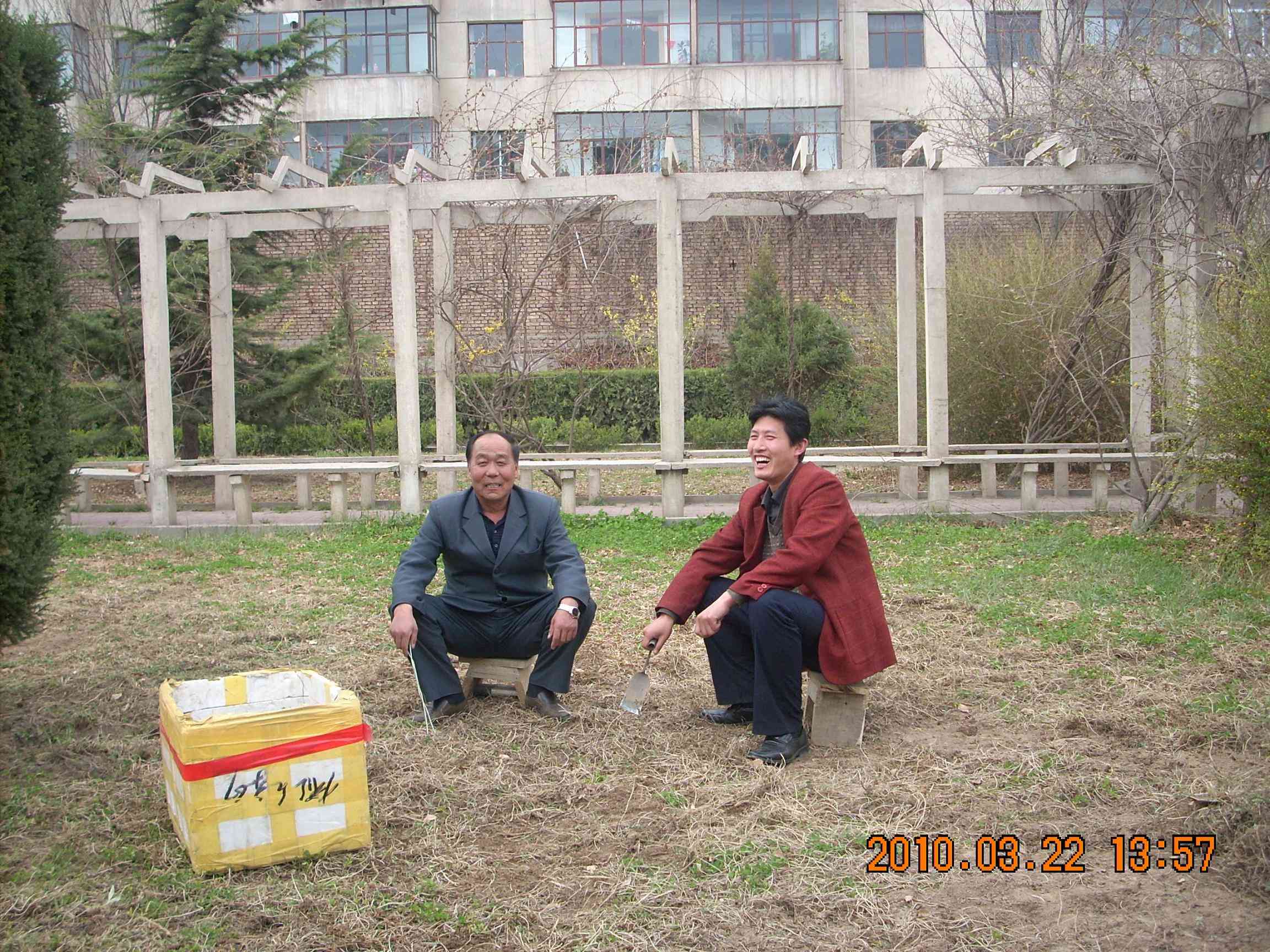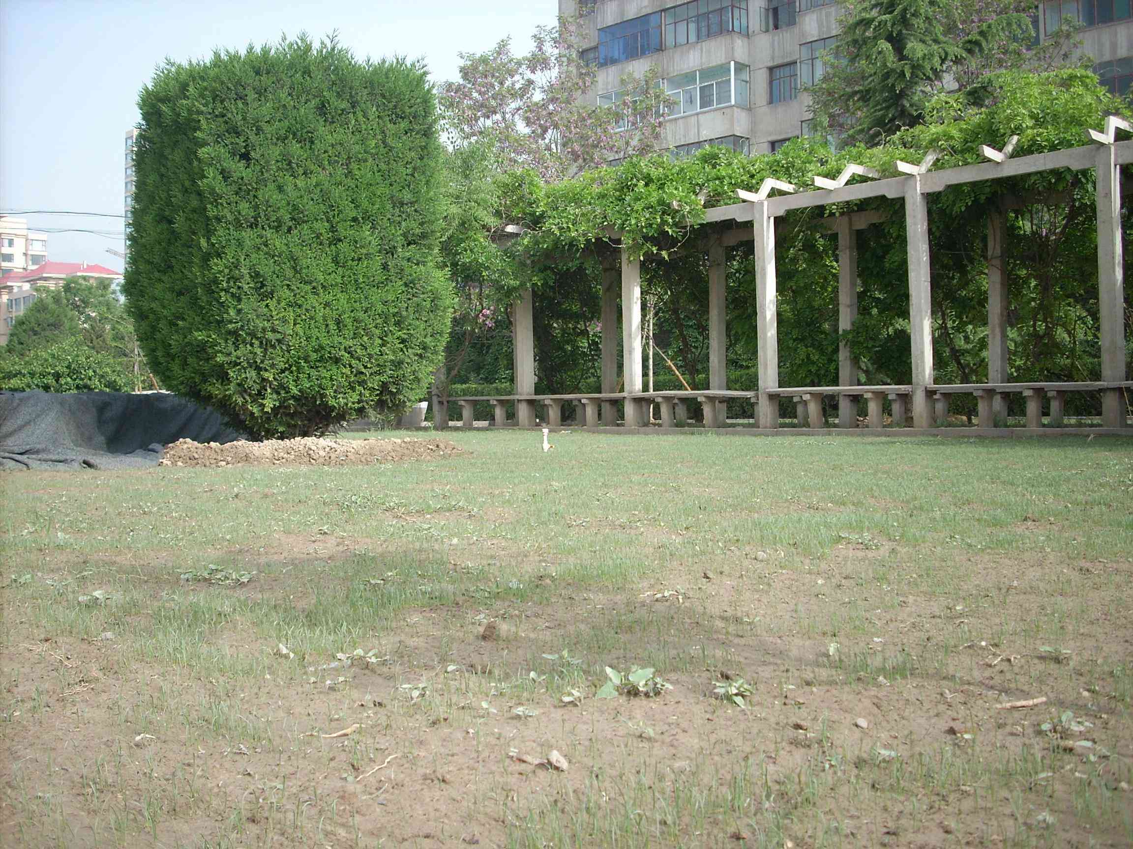 这学期学校又重新改造了这个小花园。把原来种在花园地里的草,全部铲去。为此发动了全校师生的一次大劳动。在除去草后,在地里挖开几条深沟,埋下去几根管子,应该是浇水用的,然后又把表面的土全部翻了一遍。之后种上了新的草种子,每天都有浇水的阿姨天天去操心这片土地。