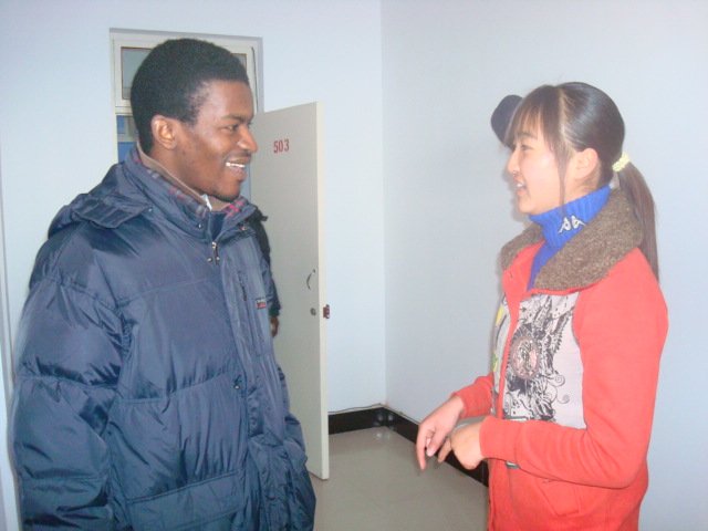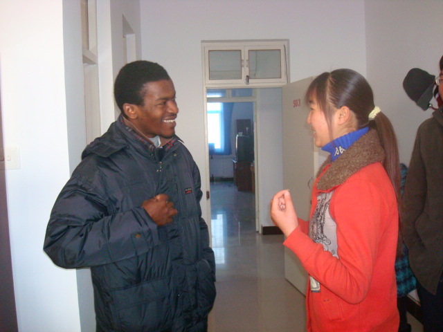 课堂上他们教我们英语,课下我们教他们汉语,那时,他们就象学生一样谦虚的听从老师的教导。课外活动,我们一起运动或一起聊天,听我们讲中国的传统,听他们将南非的故事!