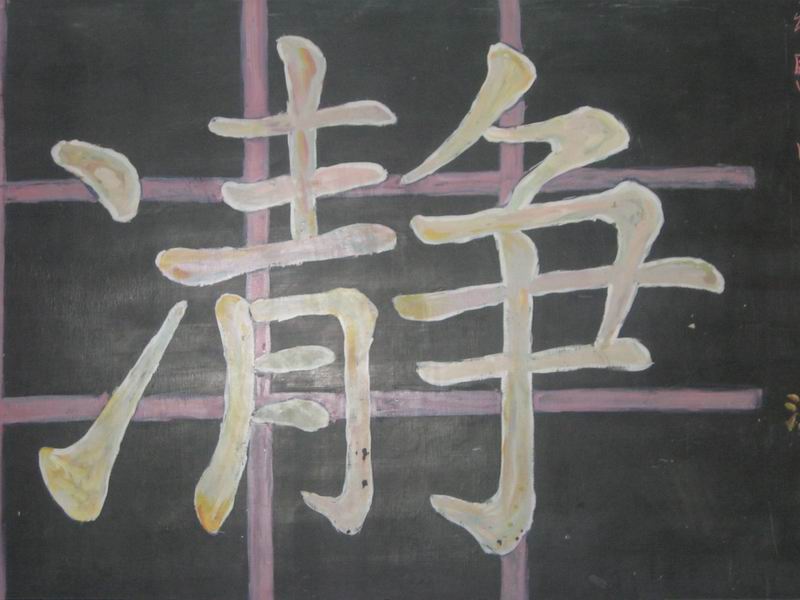 最近听说要搬学校了。心中不免感到一分欣喜。因为听说朝天中学是一个好地方。曾考出过文科状元,所以对这个地方有一份好奇。搬到这边是确实发现这里绿树成荫,是一个学习的地方。所以便对我们的新旅途有一份憧憬。在教室中我发现了一个很有趣的地方。有一个黑板上面有一个很奇怪的字。它是由两点水加一个静字组成的。看了简介才知道,这是取用"净"与"静"字组合成的。告述我们学习要静与净相结合。