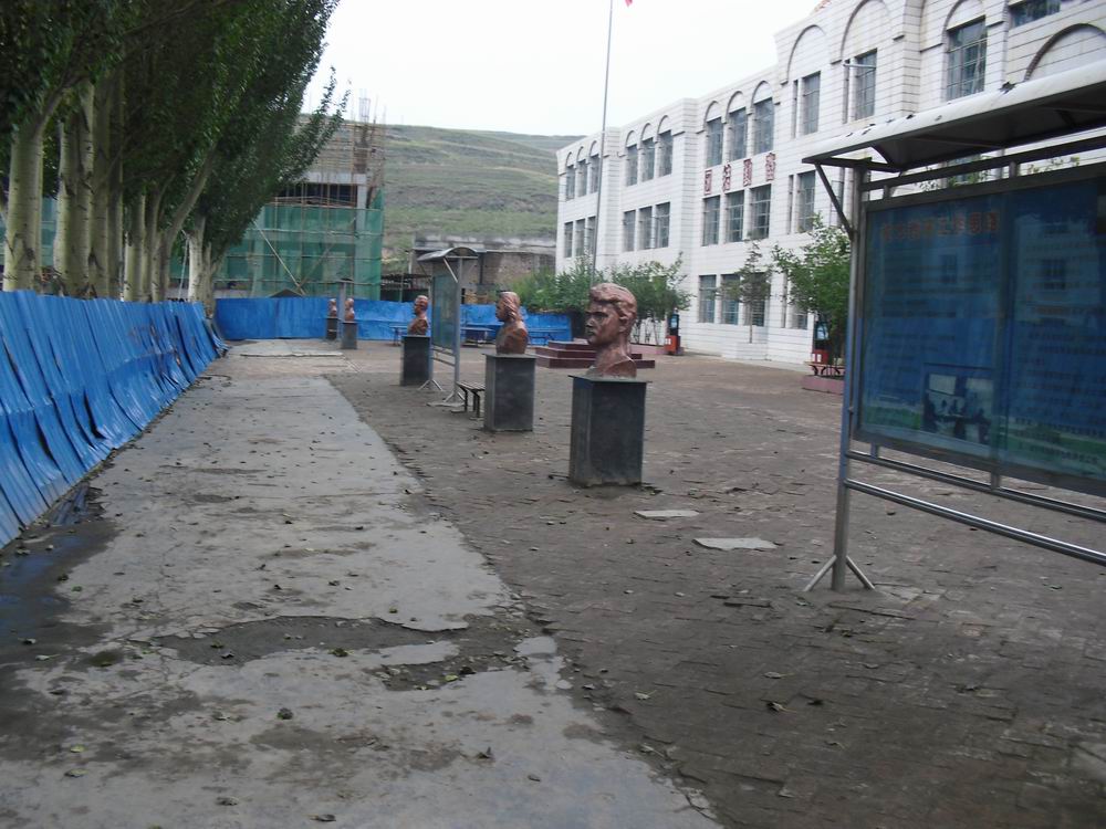 一走进校园,眼前就是操场,操场的四周整整齐齐的栽种着高大的白杨树,它们像一个个保卫操场的卫士,白杨树很茂盛,因为现在是秋天,翠绿色的树叶中略带一些黄色。操场的正前方耸立着一根不锈钢的旗杆,在阳光的照耀下闪闪发光,五星红旗在蓝天的映衬下,显得更加鲜艳、夺目。