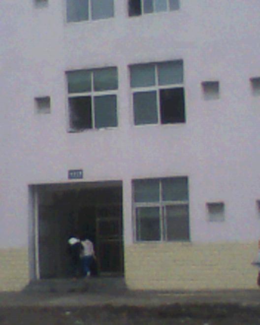左边,就是我们的宿舍楼了,一共五层,也采用了代表温暖的色调—粉色。最先看到的是女生宿舍,女生似乎很勤劳,所以许多窗口看到的都是晾着的衣服;旁边的是男生宿舍,或许调皮是男生们的天性,所以离不开热闹。宿舍后面就是食堂了,分为两层,可容纳几百人。
