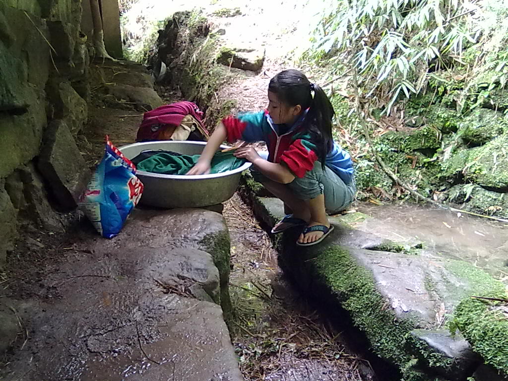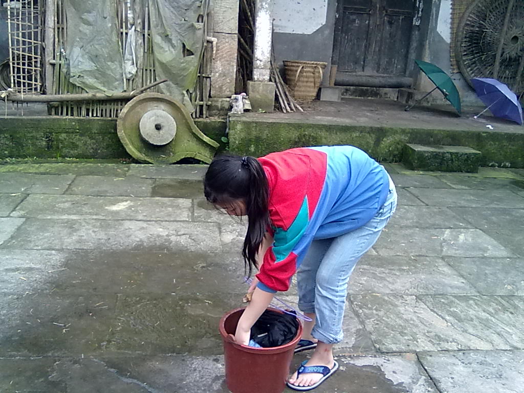 小妹的住的院子里有四户人家,不过现在没几个人在家住着,没有洗衣台,没有水龙头,也没有下水道,每次在洗衣服的时候还要先打一桶水洗去这张青石板上的泥尘。可是,我们的小妹从来没抱怨过,觉得这就是自己的事情,除开做自己的事情,还经常帮助姨妈做些家务,碰着我在,还没玩没了地问问题,一点都没有不开心的样子。
